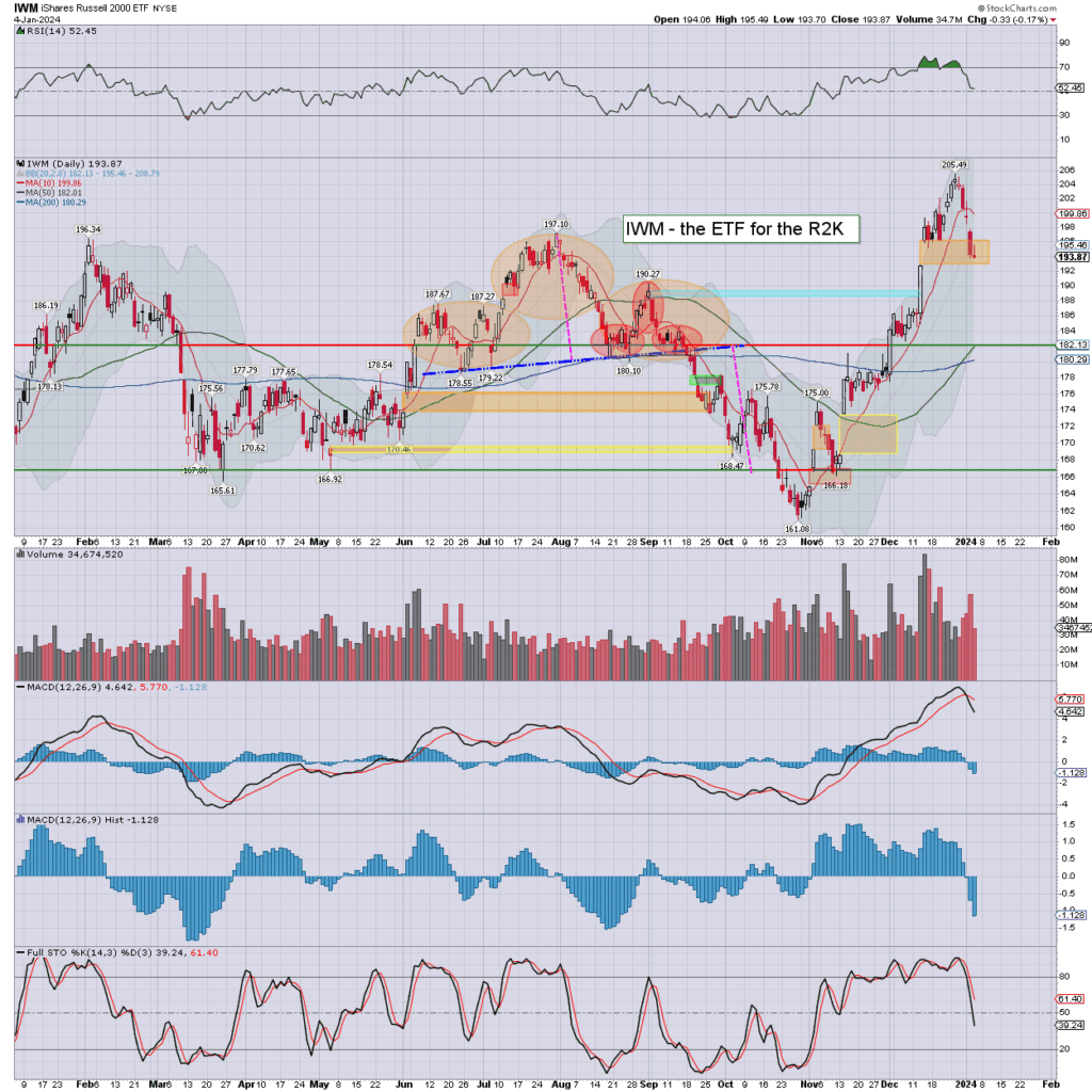 R2K: a fifth day lower, setting -0.2% to 193.87. Cyclically low.