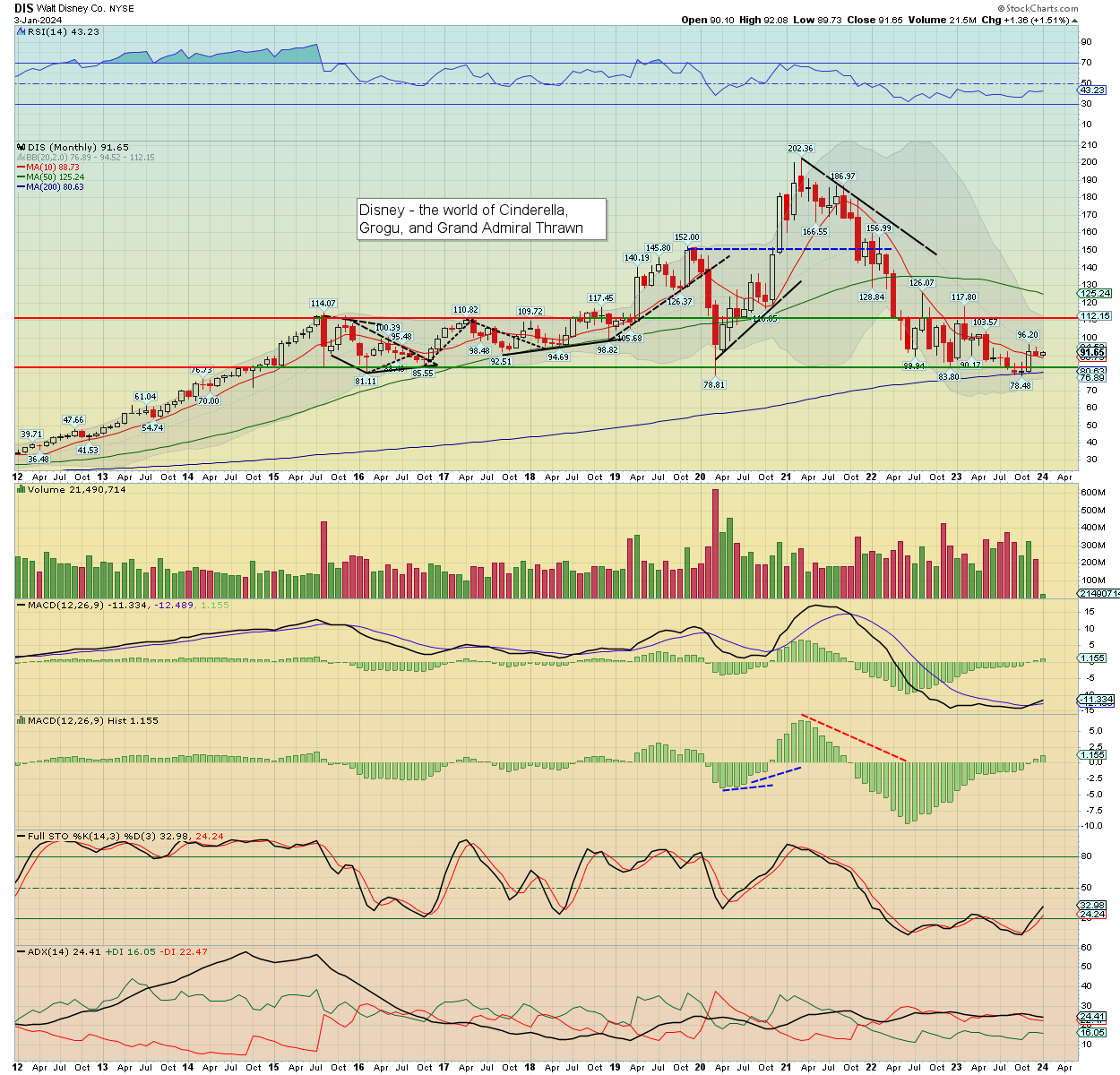Disney settled Wednesday +1.0% to $91.65, with news of another activist group pushing against Trian – lead by Nelson Peltz. This all seems a stupid distraction, whilst the company is set to churn out more (loss making) woke garbage in the years ahead.