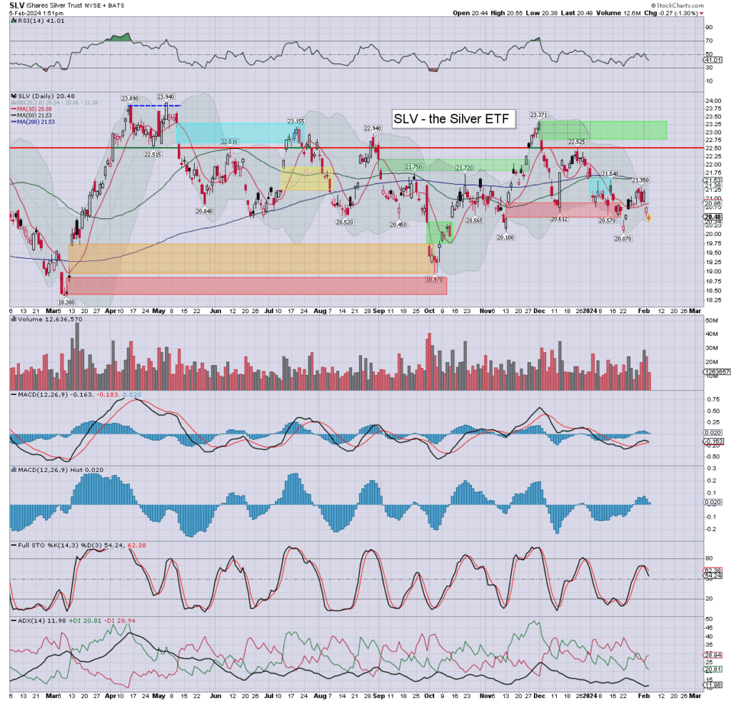 Silver/SLV: silver printed $22.33, pressured by the weak equity market and the dollar. I will continue to favour gold.