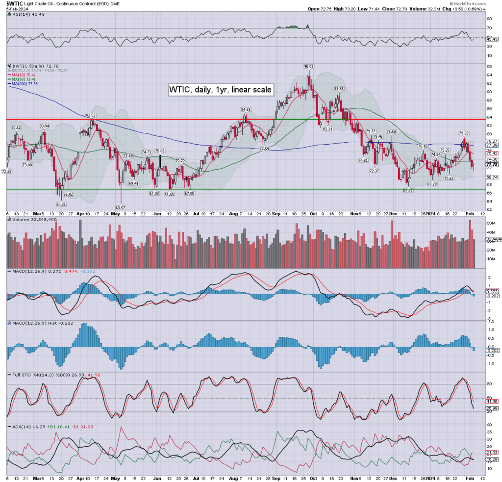 WTIC: oil printed $71.41, if recovering to settle at $72.78. Oil bulls should continue to seek a break AND hold >$78.