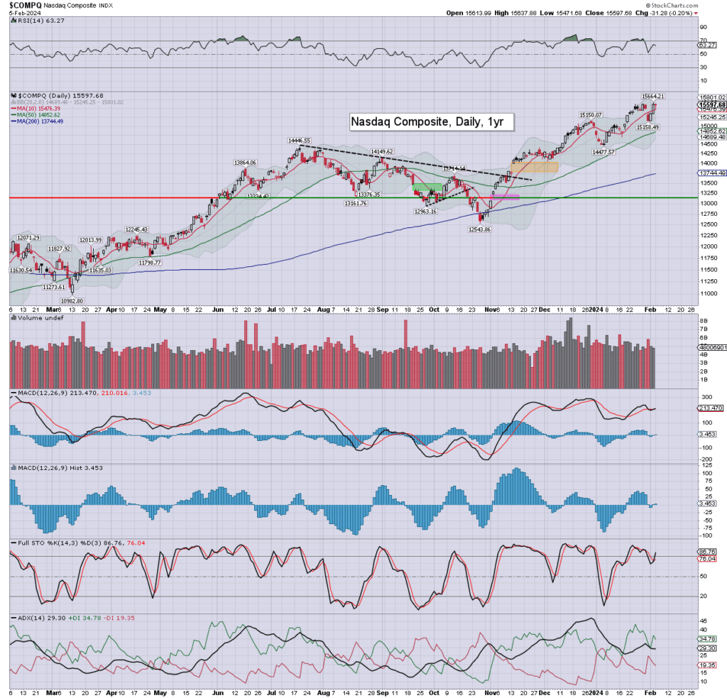 US equity indexes closed on a weak note, SPX -15pts (0.3%) at 4942. Nasdaq comp’ -0.2%. Dow -0.7%. The Transports settled -0.7%. R2K -1.3%