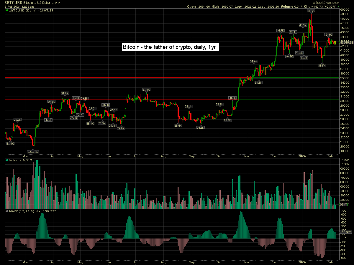 Bitcoin is currently +0.3% at $42805