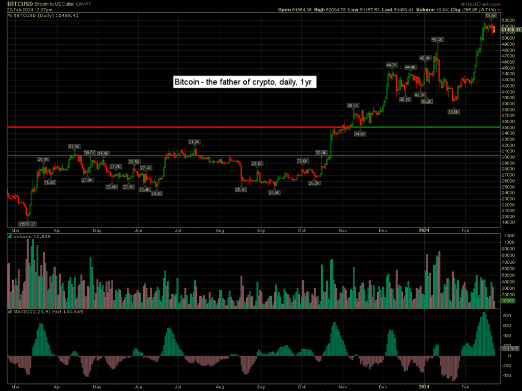 Bitcoin is -0.7% at $51488. Every day is can hold >50K, increases the probability it will make a broader push to next resistance of $61K.