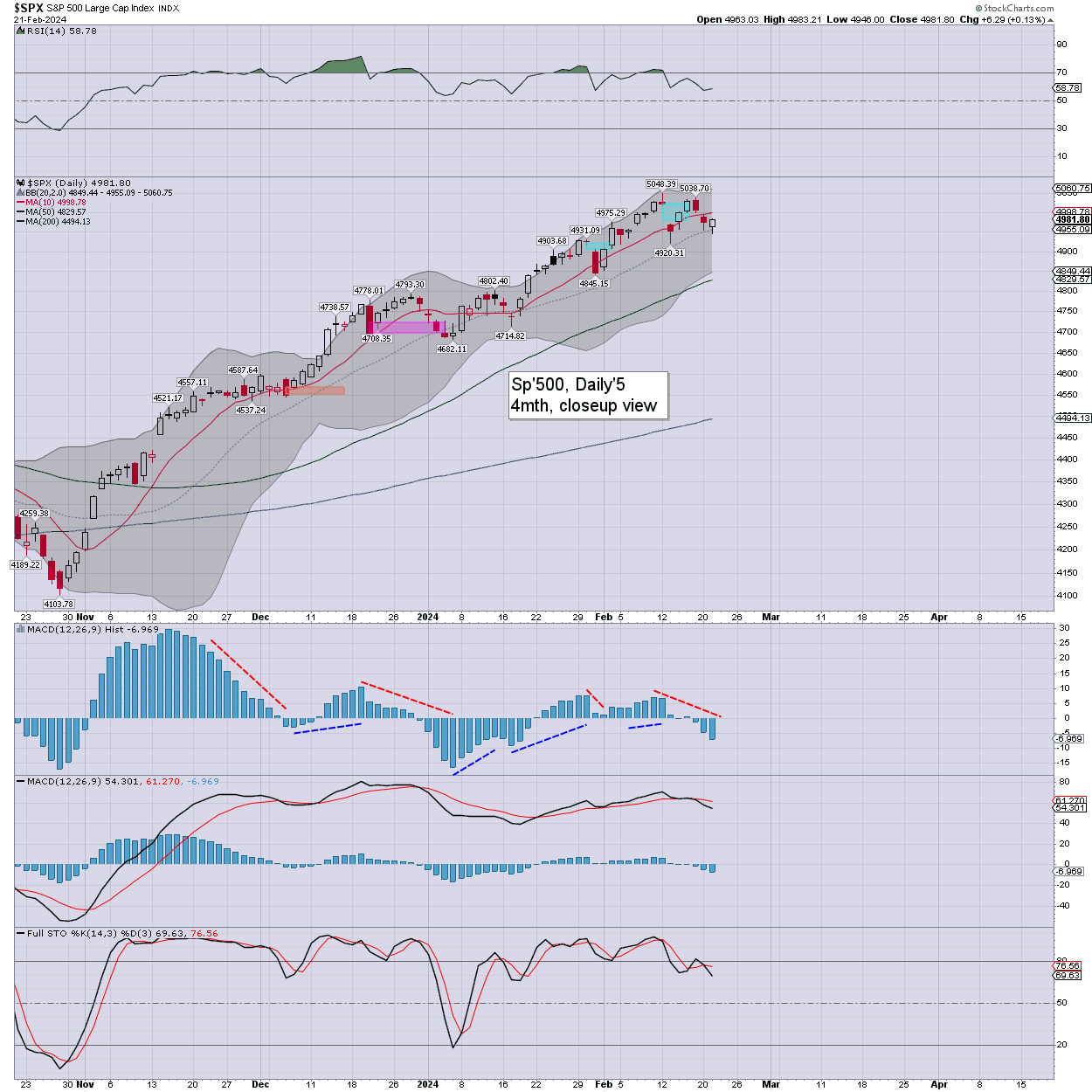 US equity indexes closed moderately mixed, SPX +6pts (0.1%) at 4981. Nasdaq comp’ -0.3%. Dow +0.1%. The Transports settled +0.8%. R2K -0.5%