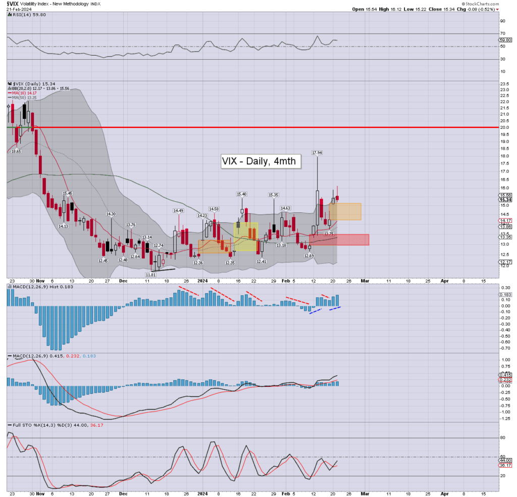 Typically, the VIX could be expected to be ground lower into the weekend. The key 20 threshold still looks out of range for some considerable time… unless a ‘wild card’.