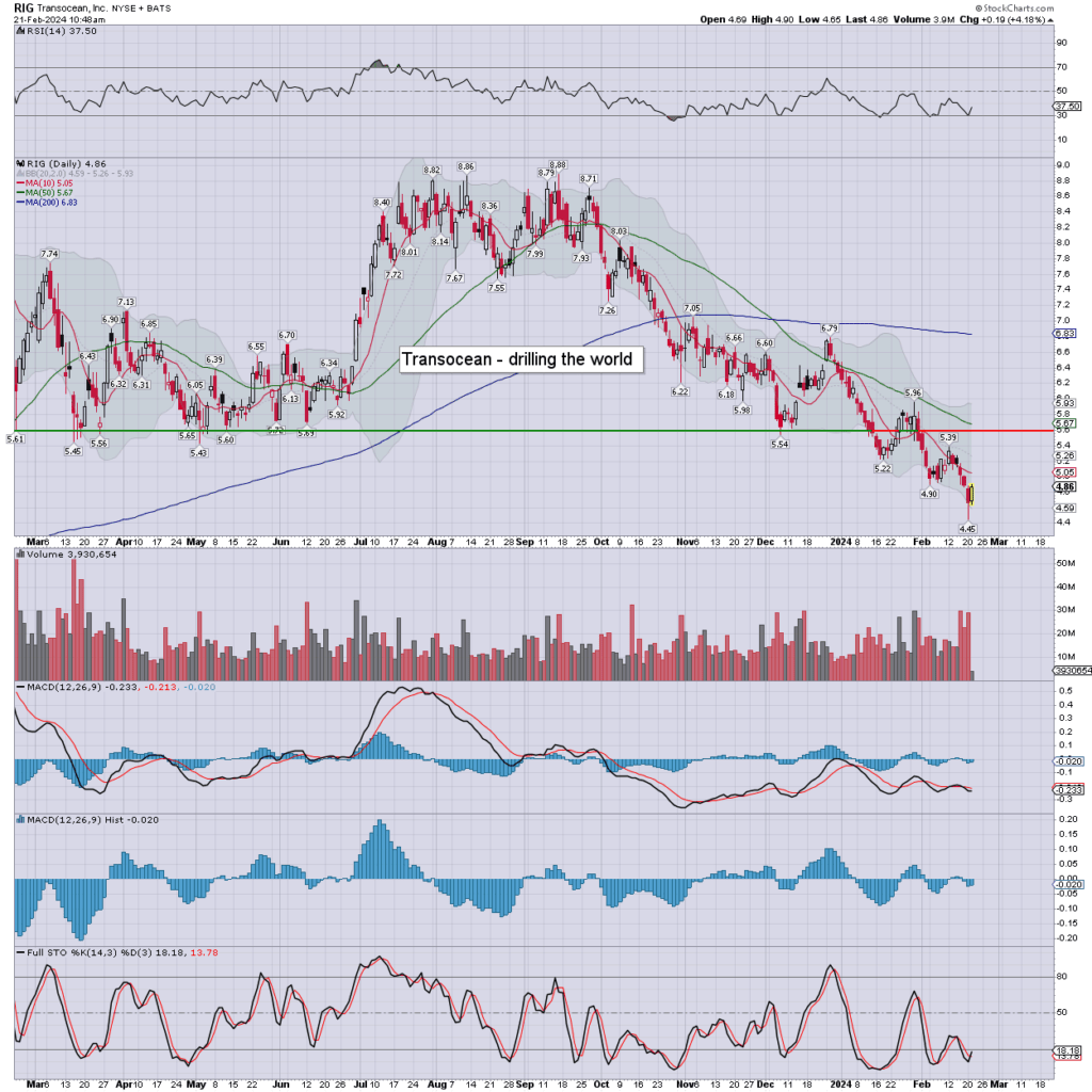 Transocean catching a bounce with the sector, but it can’t turn a profit, and I’d very much favour OXY and SLB… the latter of which I hold.