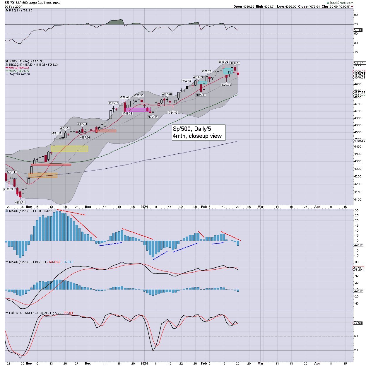 SPX: the fourth day lower of six, printing 4955, if recovering to settle -0.6% to 4975. Momentum ticked lower, and offers another day or two. Support… around 4900.