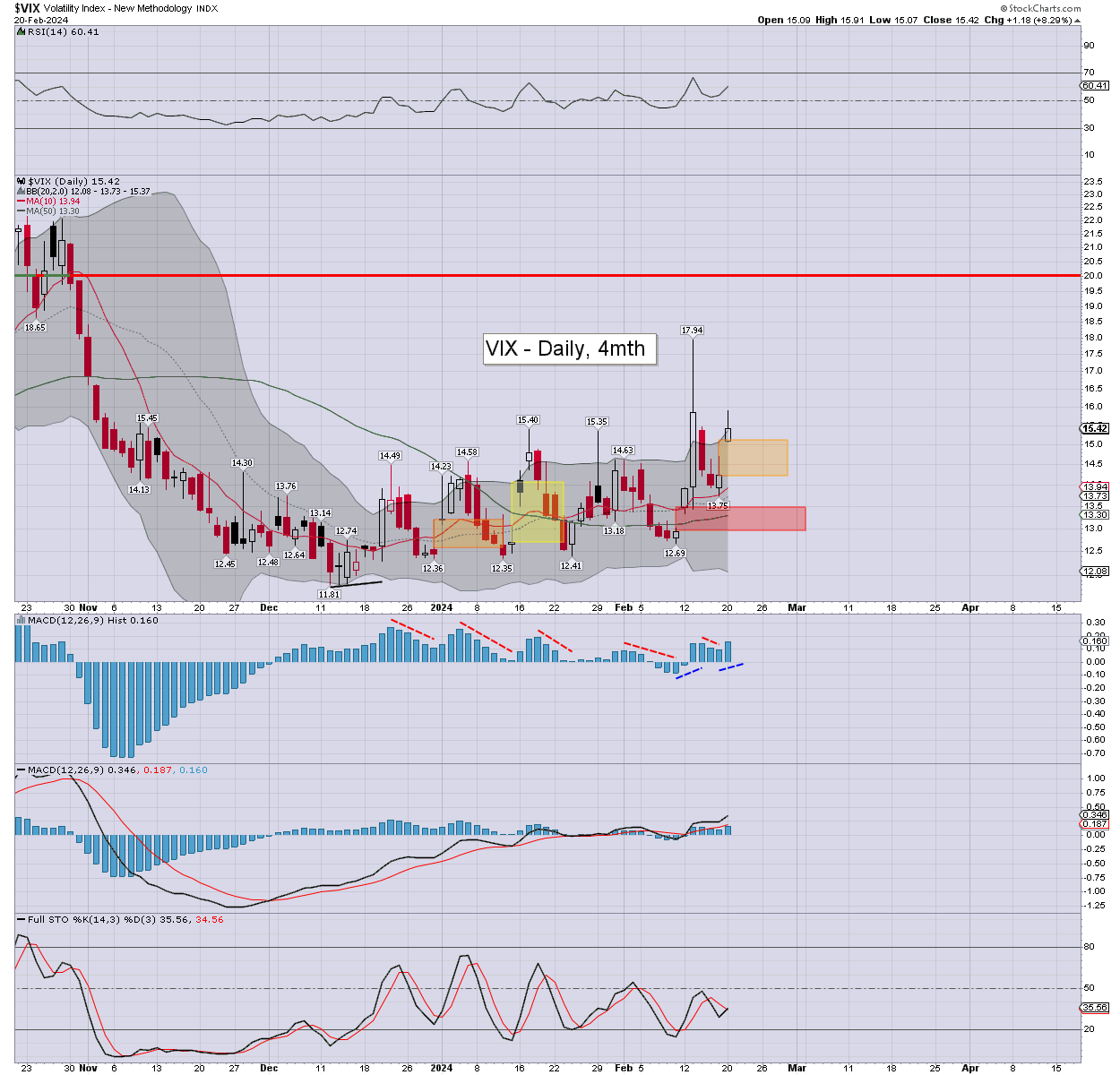 Volatility was a little mixed, the VIX printing 15.91, if cooling back to settle +8.3% to 15.42. Momentum ticked back upward, and is marginally positive. Major resistance 16/17s. The key 20 threshold still looks out of range, unless a geo-political scare.
