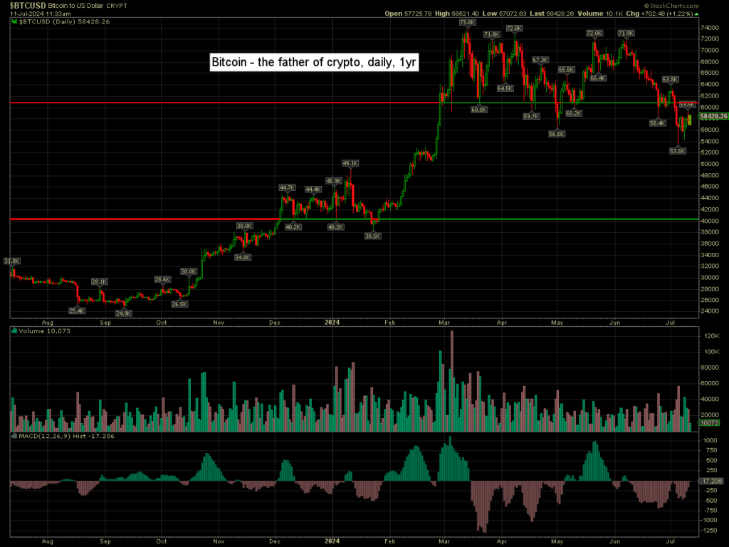 Bitcoin is currently +1.2% at $58428. Momentum due to turn positive.