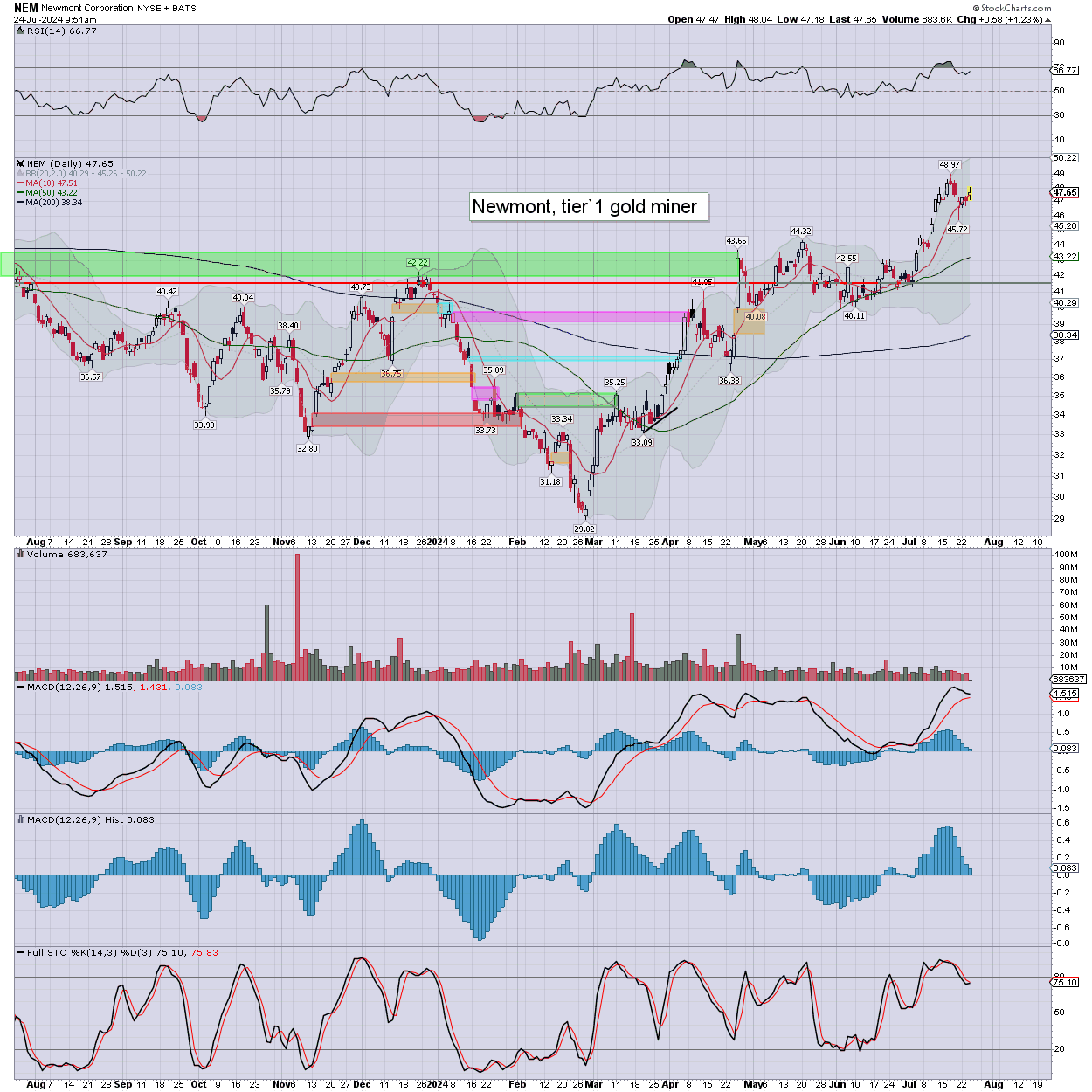 Newmont is higher… with gold printing $2427.