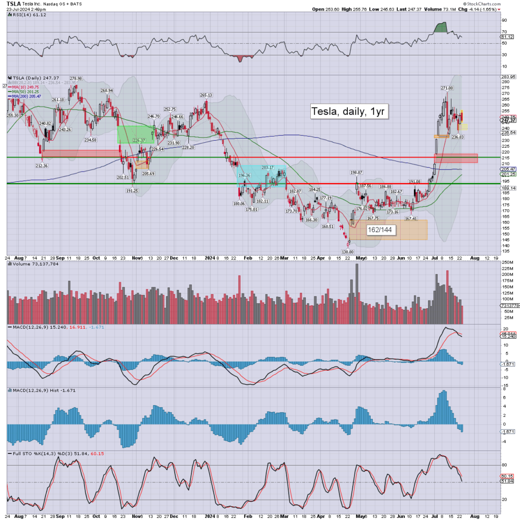 Tesla has earnings in AH. This is clearly a wild card, and even the bold will arguably leave alone. Best guess… a break lower. The main market setup would suggest UP.