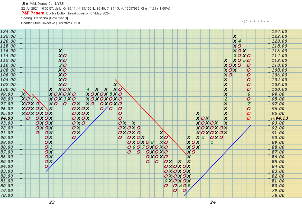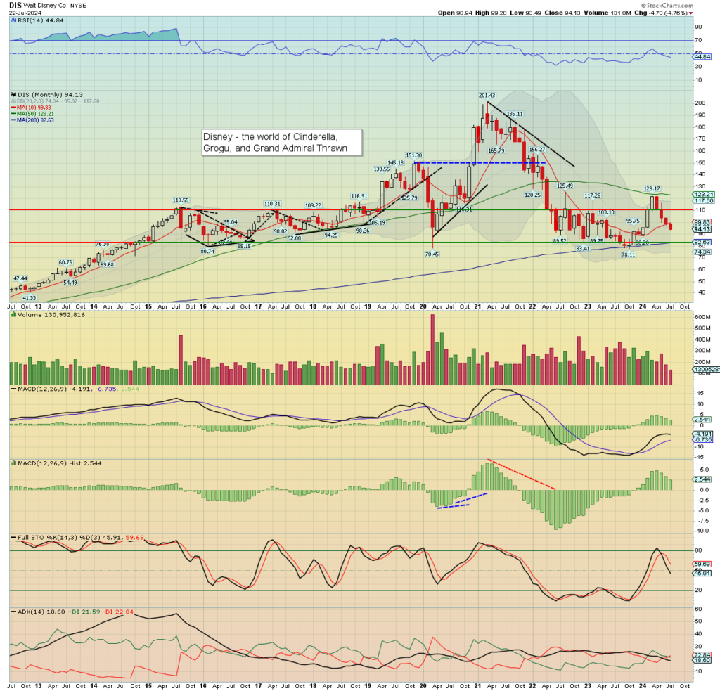 Disney settled the day -1.7% to $94.13. We’ve a minor downside gap to 87/83s… as seems viable in early August with earnings.
