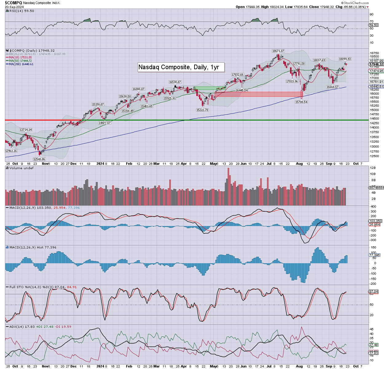 NAS: settling -0.4% to 17948. Momentum is on the high side. Big target is the 200dma in the 16400s.