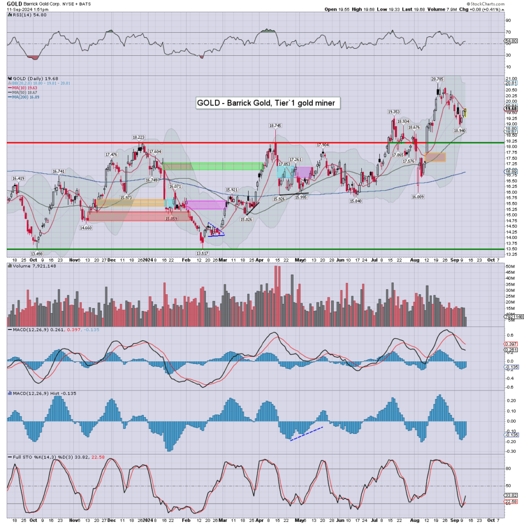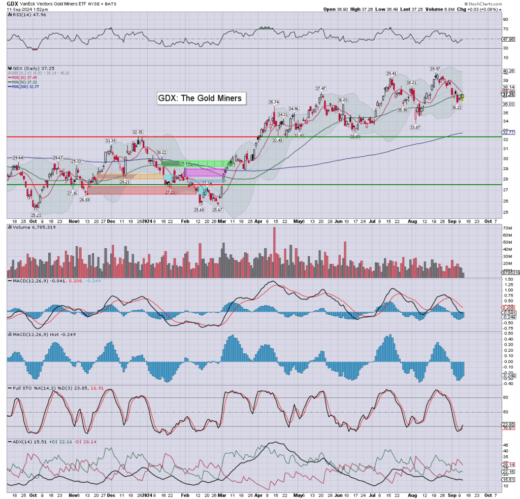 GDX: miners are mixed, if leaning on the weaker side. Any main market downside will be a problem.