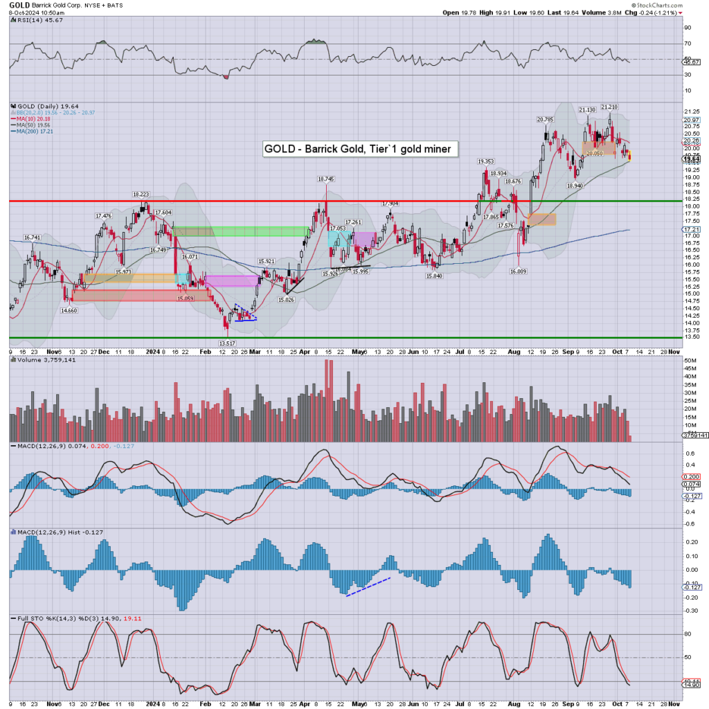 Barrick Gold lower with the sector, and with gold $2638. The latter not helped by higher bond yields.