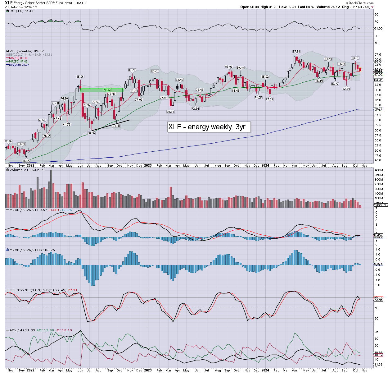 US equities are broadly lower. Meanwhile, WTIC is currently -1.2% in the mid $70s. The energy sector ETF of XLE is currently net lower for the week by -0.7% at $89.67.