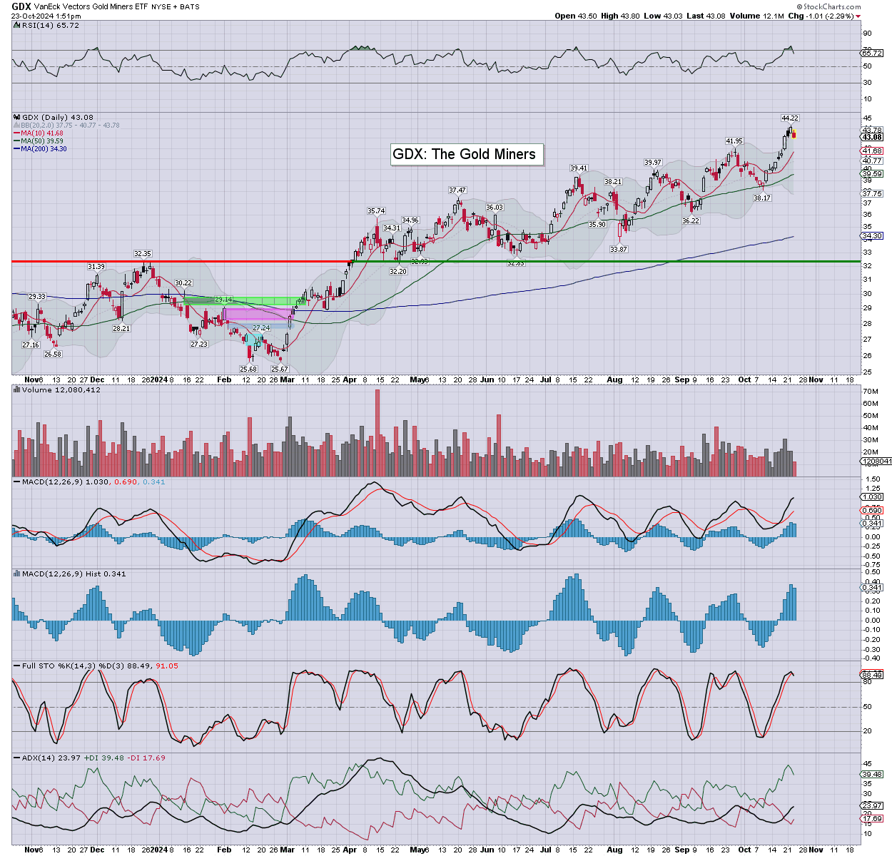 GDX: miners whacked lower by silver/gold, and a weak main market.
