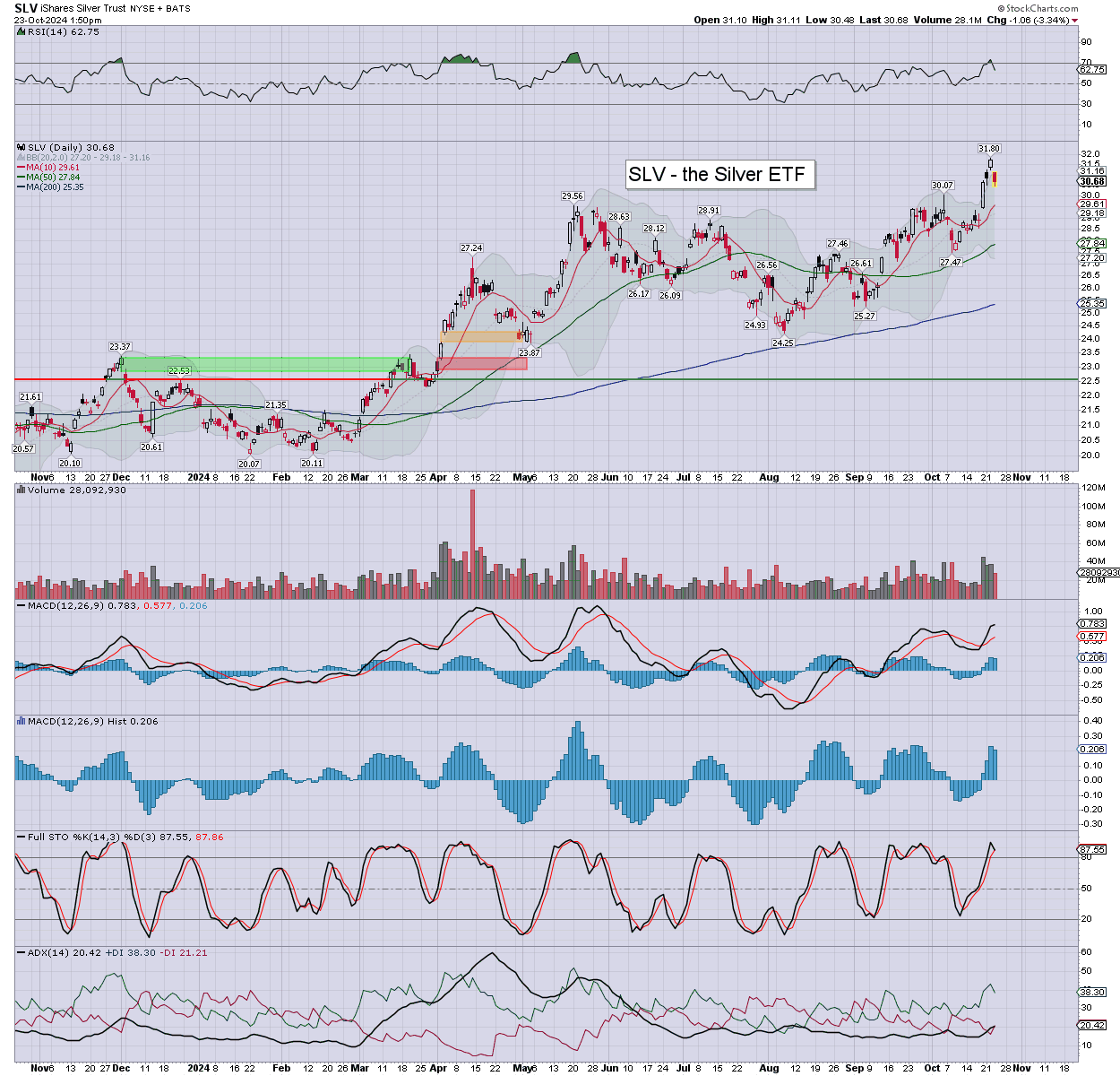Silver/SLV: silver is powerfully lower, printing $33.61, washing out some of the weaker s/t bulls. Even the bold will favour gold, not least for a better geo-political fear bid.