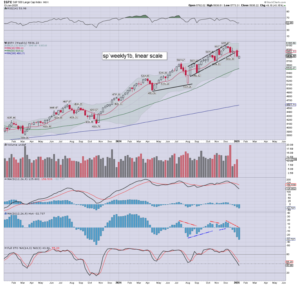 SPX: First… last week’s bearish engulfing weekly candle did play out… as we broke a new s/t low. It does appear though that 5773 is as low as the bears will manage this week.