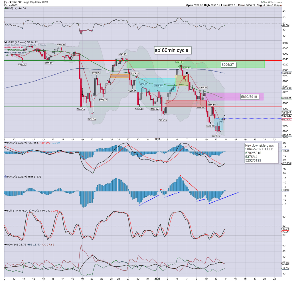 … and that concludes a Monday. Early broad downside, but recovering upward. The s/t cyclical setup favours the bulls. Even if Tuesday opens weak on the PPI data, I’d look for an upside reversal, as 5900 looks pretty easy by late Wed’. I just wonder if 6K for this Friday’s OPEX.