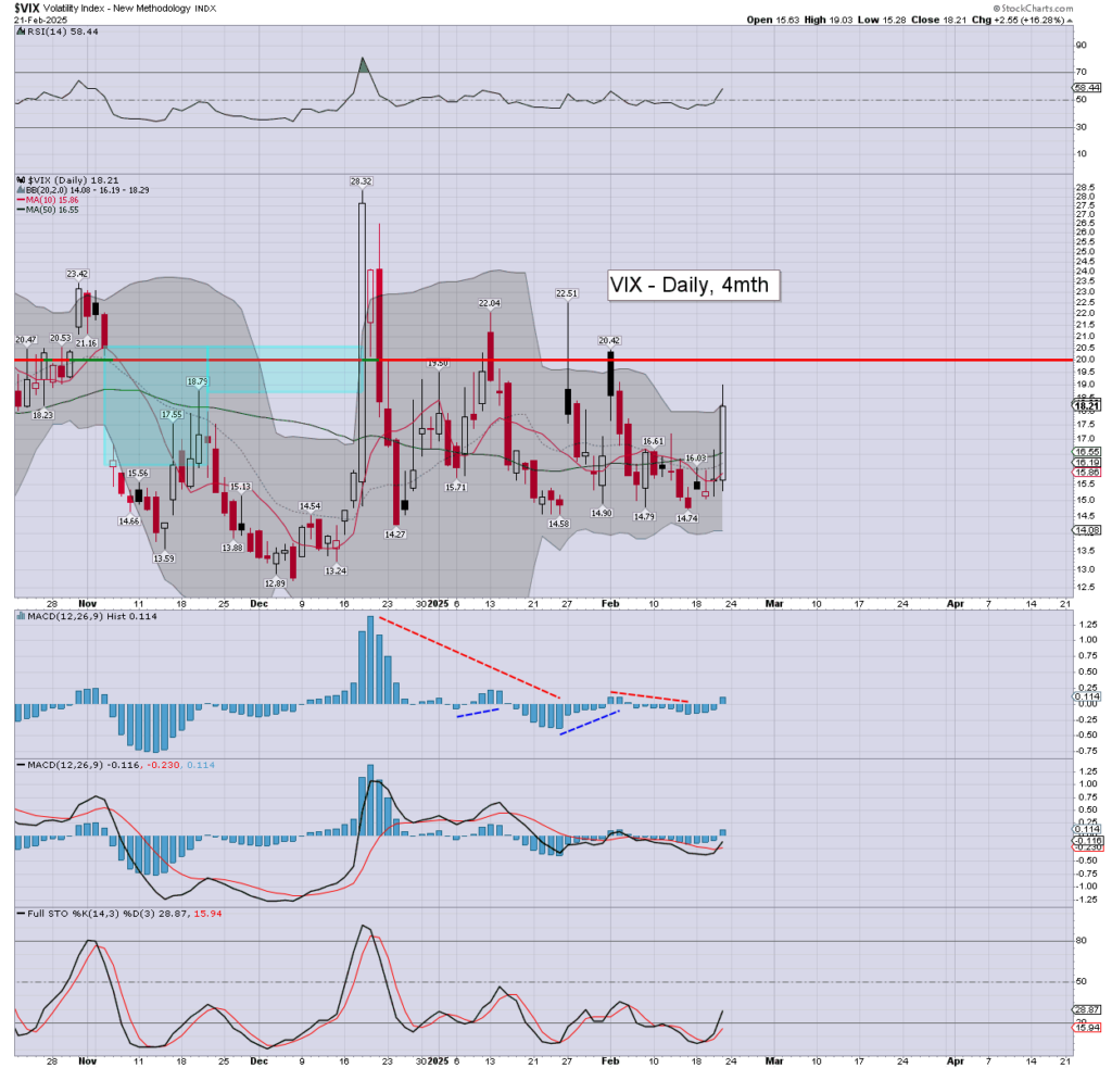 Volatility spiked, the VIX printing 19.03, and settling +16.3% to 18.21. Momentum ticked upward, turning marginally positive.