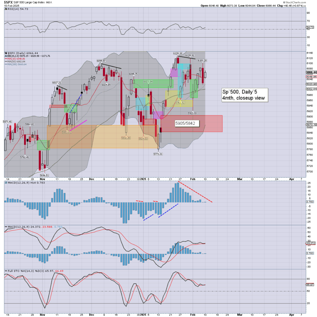 SPX: printing 6073, and settling +0.7% to 6066. Friday’s bearish engulfing candle failed to play out. Today’s candle is an inside day, but I’m rather dismissive of it. S/t bearish to red gap… unless >6100.