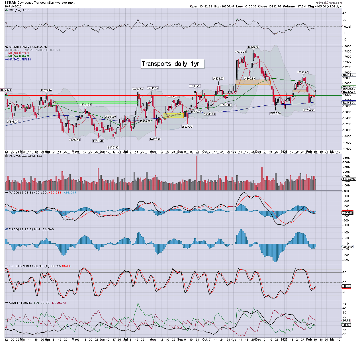 Trans: the fourth day higher of five, settling +1.0% to 16312. I’d look for another test of the 200dma.