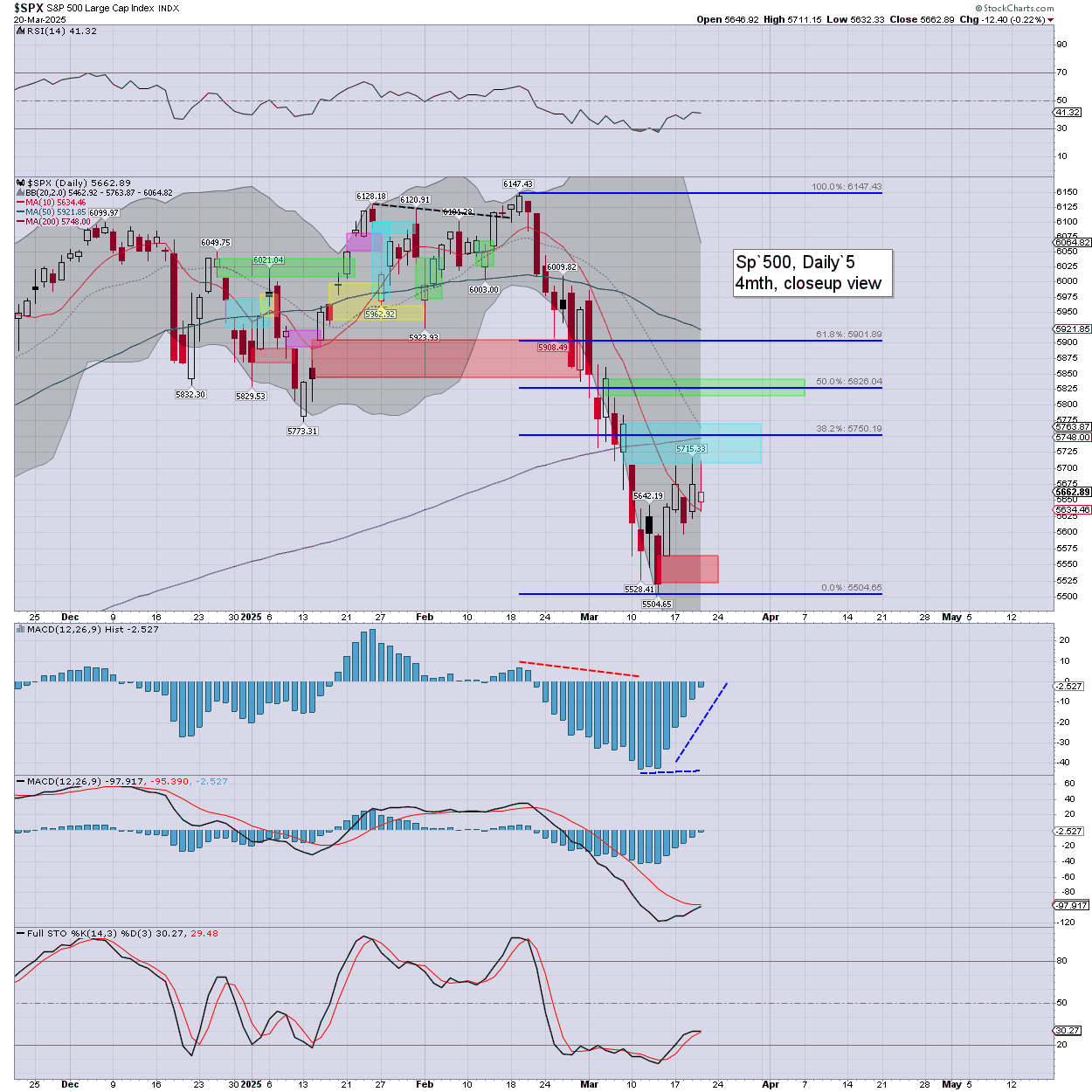 SPX: an early low of 5632, bouncing to 5711, and cooling back to settle -0.2% to 5662. Today’s candle is a hollow red reversal, and leans s/t bullish.