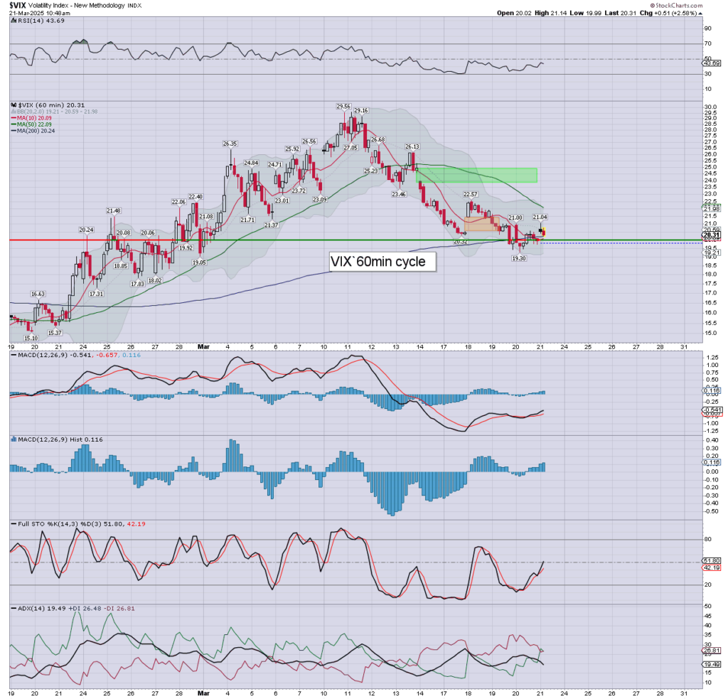 US equities are choppy, if attempting to recover upward. VIX appears very prone to cooling back under the key 20 threshold.