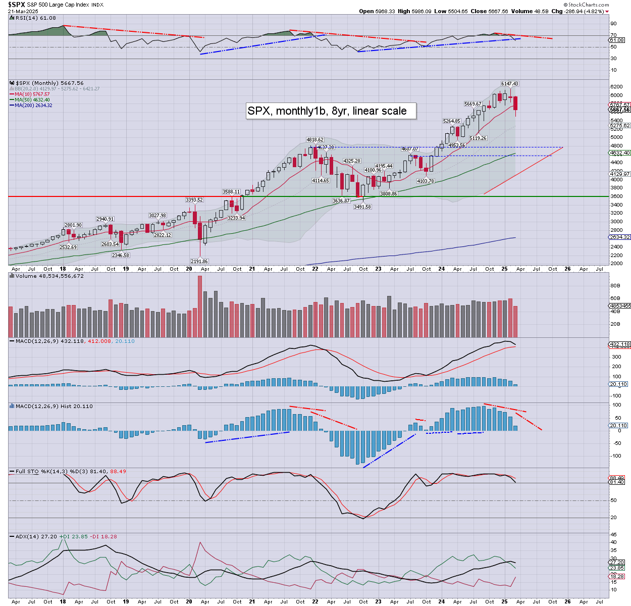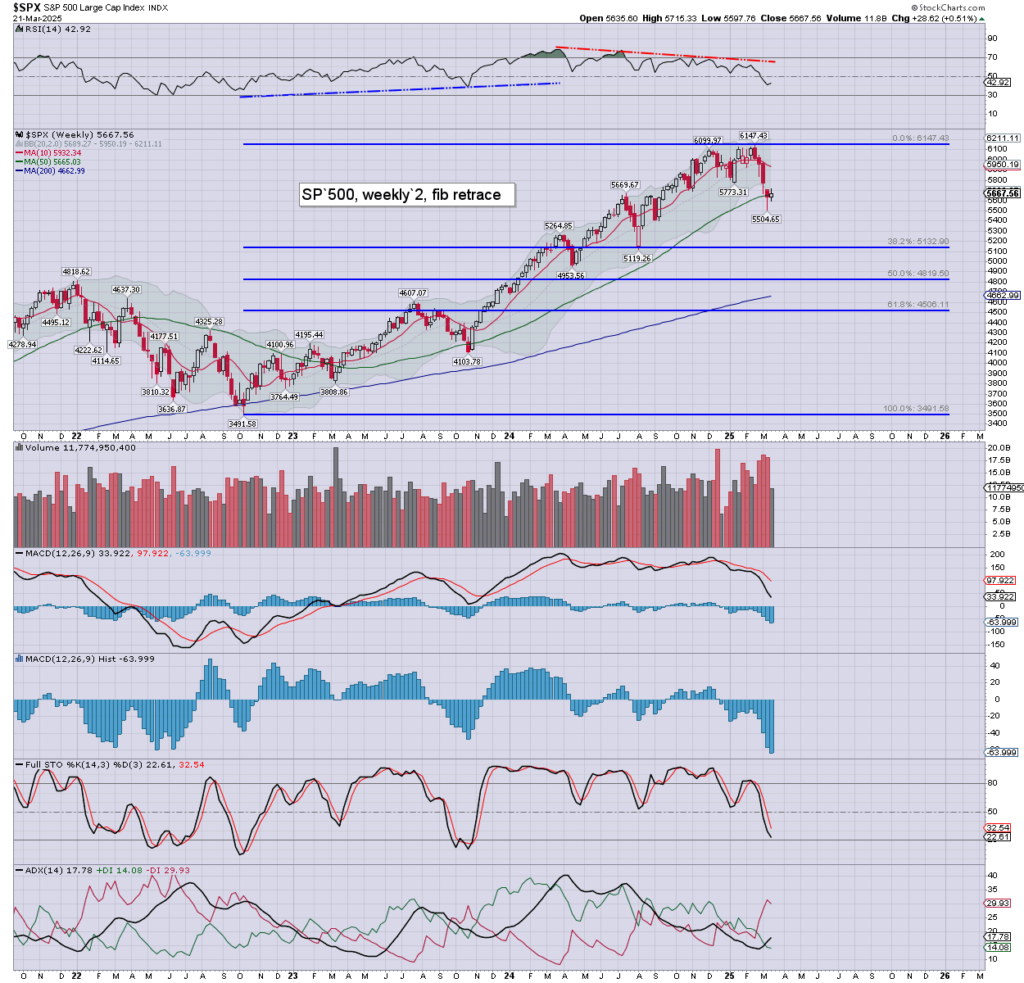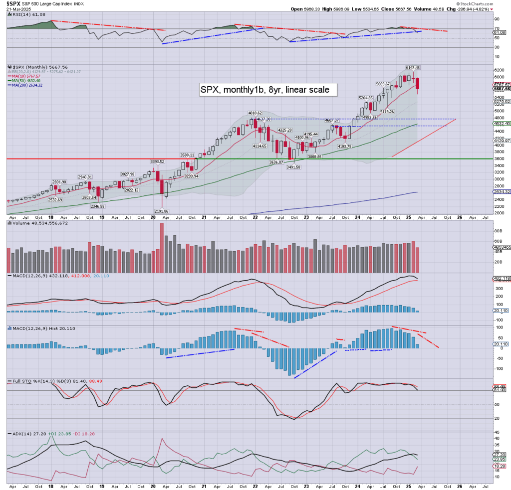 With six trading days left of March, the SPX is currently -286pts (4.8%) at 5667, having bounced from 5504. Monthly momentum continues to weaken, and is due to turn negative as of April 1st.