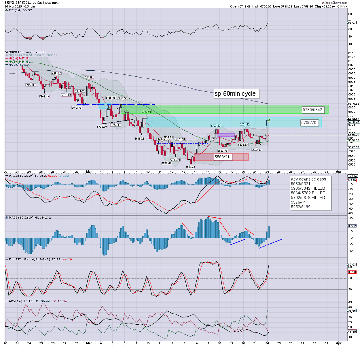 US equities are very significantly higher, with the SPX battling to break AND hold above the key 200dma. A broader push to around 5900 now appears probable in early April. VIX has been ground to the low 18s.