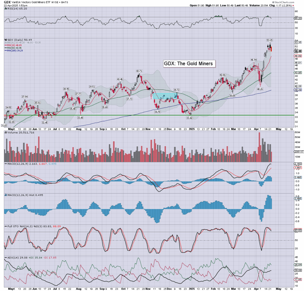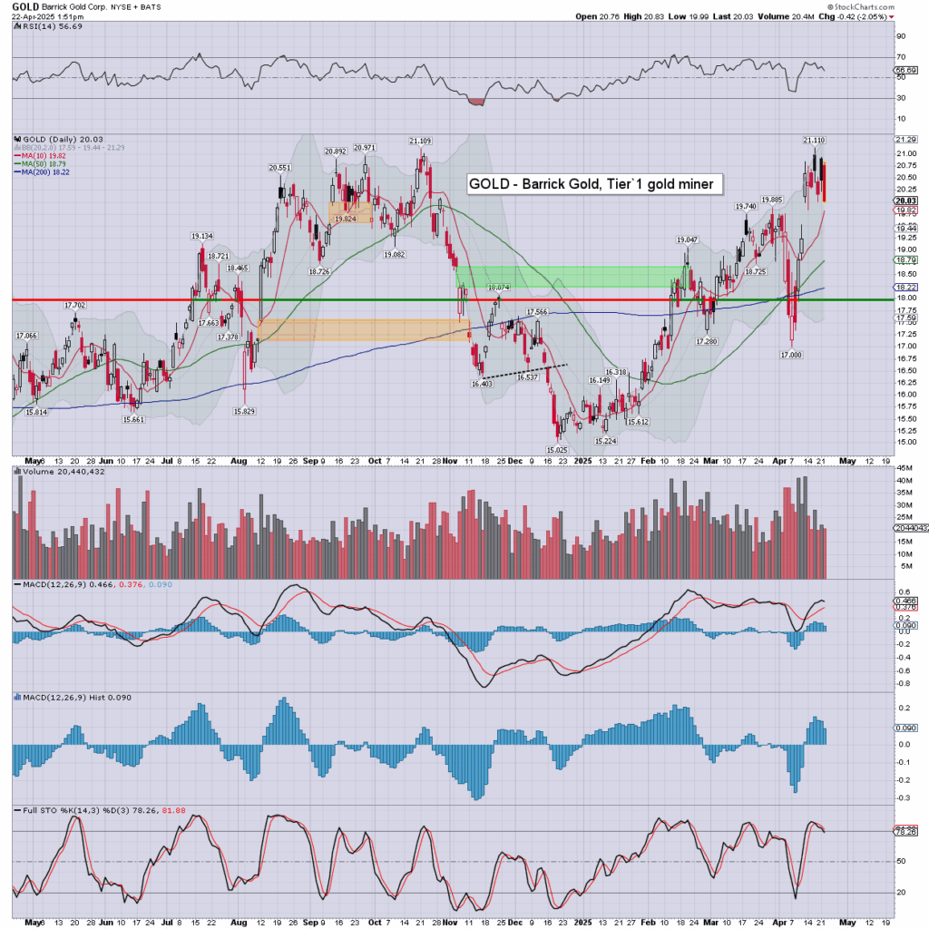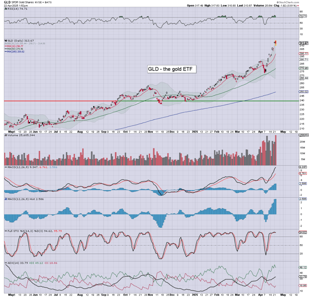Gold/GLD: printing a new hist’ high of $3499, but cooling back to around $3487. Bearish engulfing candle. If DXY 89/88s, then Gold +20% to around 4K