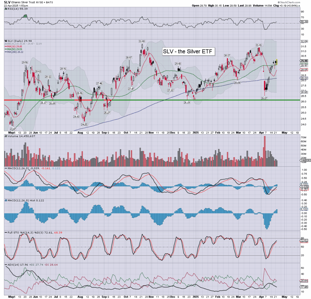 Silver/SLV: silver currently moderately higher at $32.95.