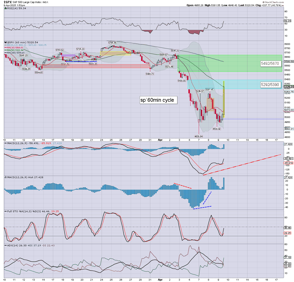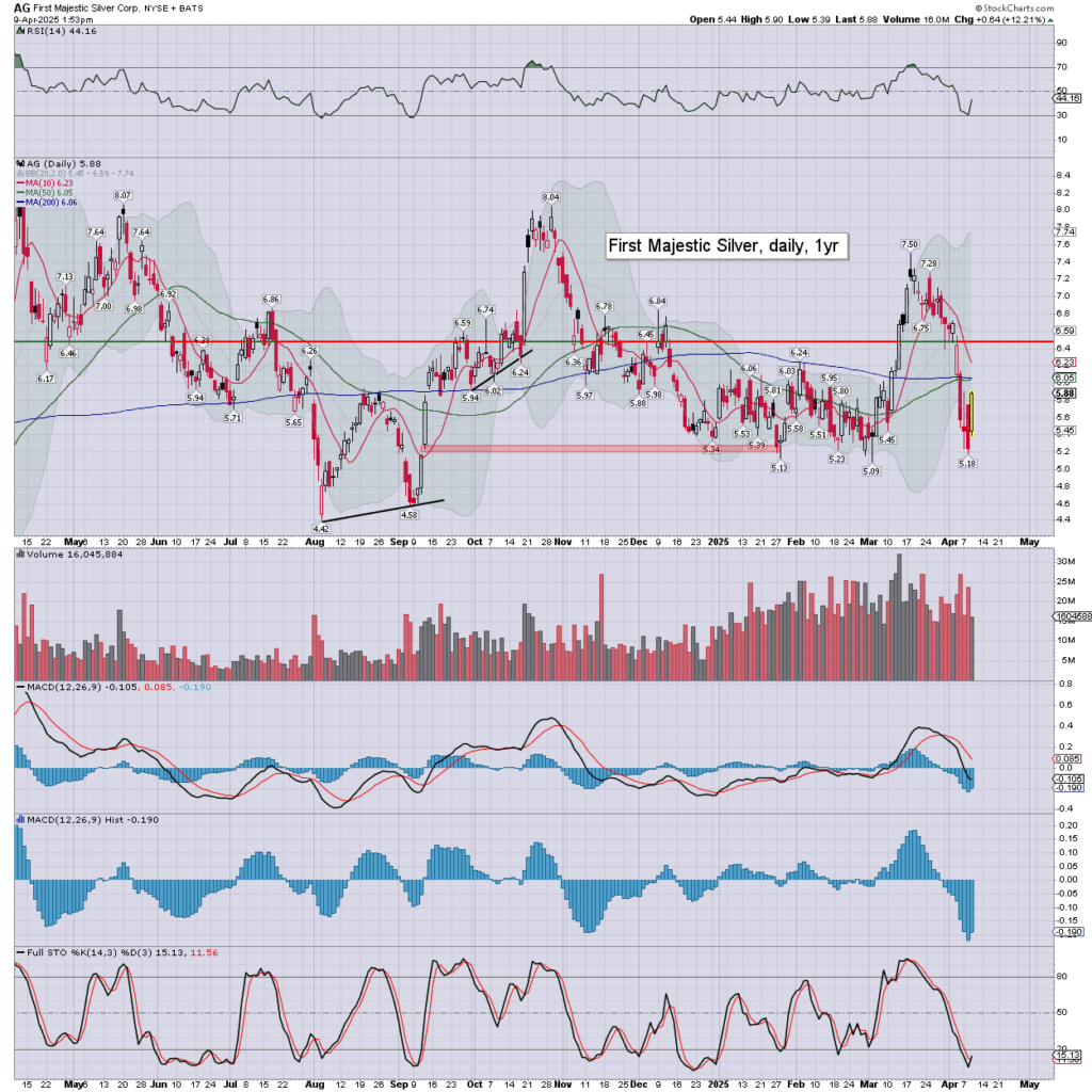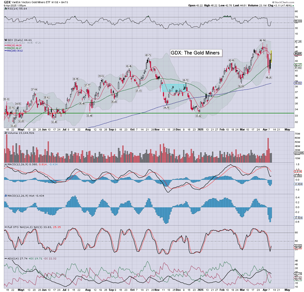 US equities are screaming higher on tariff news. Meanwhile, the precious metals are powerfully higher, Gold +$78 (2.8%), with Silver +91cents (3.3%). The miner ETF of GDX is currently +7.5% at $44.61.