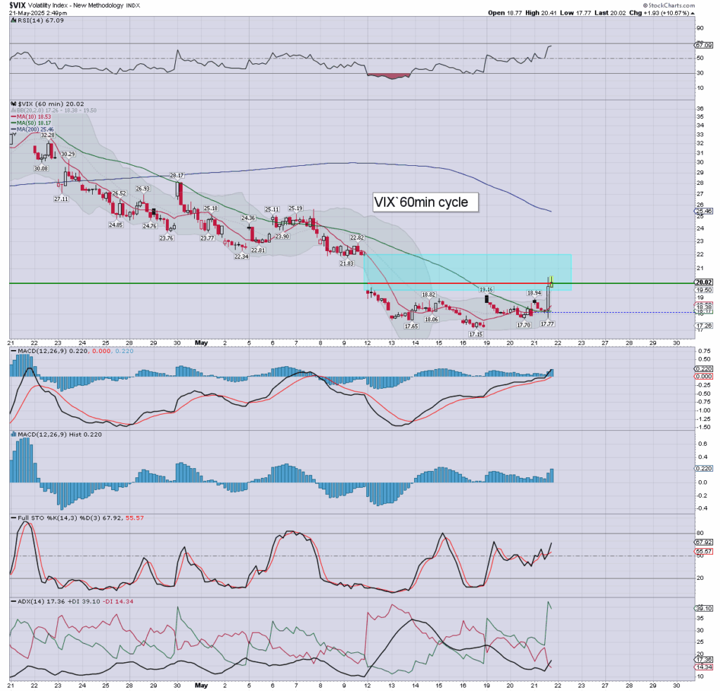US equities are set for significant declines, with the market rightly upset with the bond market… which is kicking the Trump admin for failing to cut govt’ spending. VIX is testing the key 20 threshold.