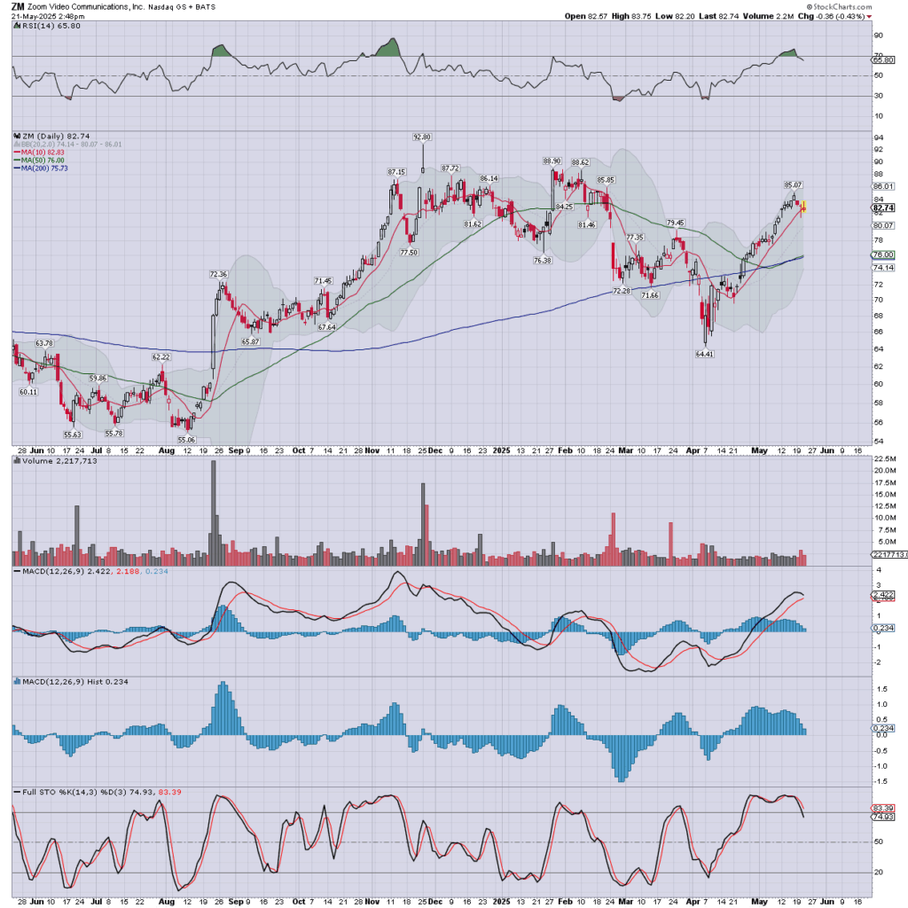 Zoom Video Comm’ has earnings in AH. The company is doing fine, but there is no growth… with the stock l/t flat lining. Zero point in owning.