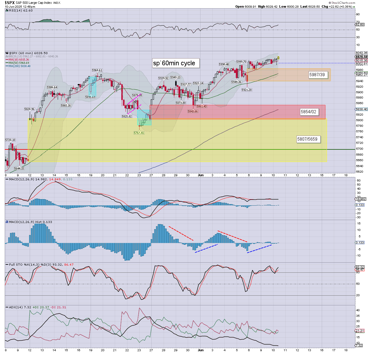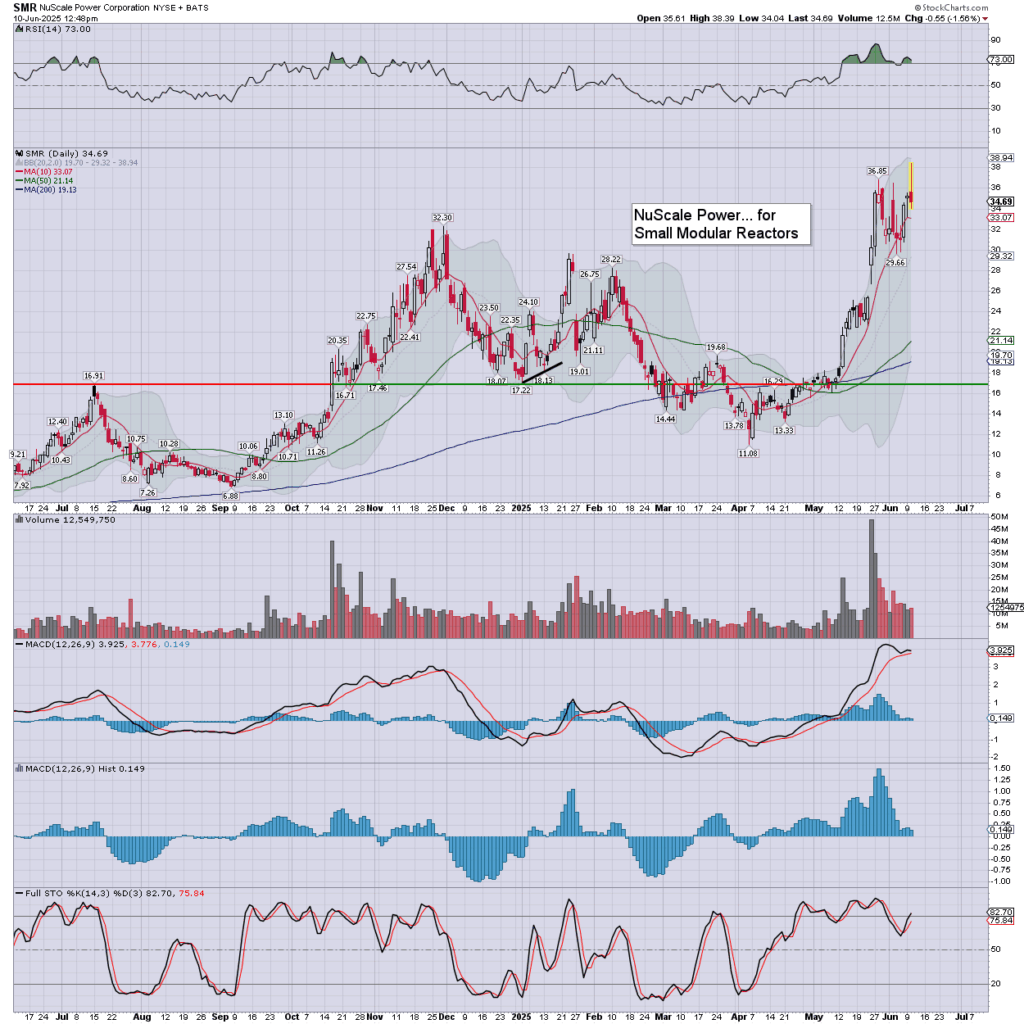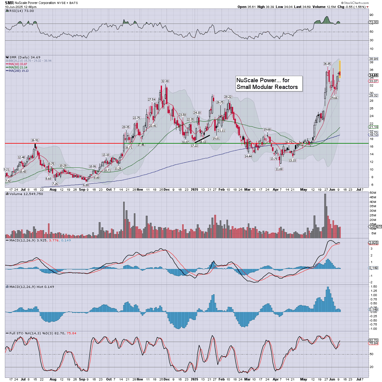 XLE: energy stocks are very significantly higher, mostly due to oil. S/t bullish, with weekly momentum having today turned positive.