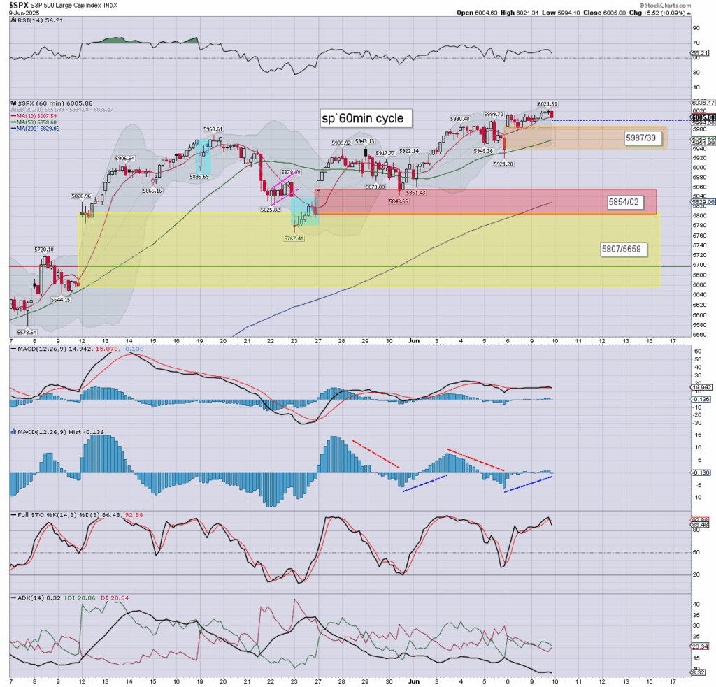 US equity indexes mostly closed a little higher, SPX +5pts (0.1%) at 6005. Nasdaq comp’ +0.3%. Dow u/c. The Transports settled +0.7%. R2K +0.7%