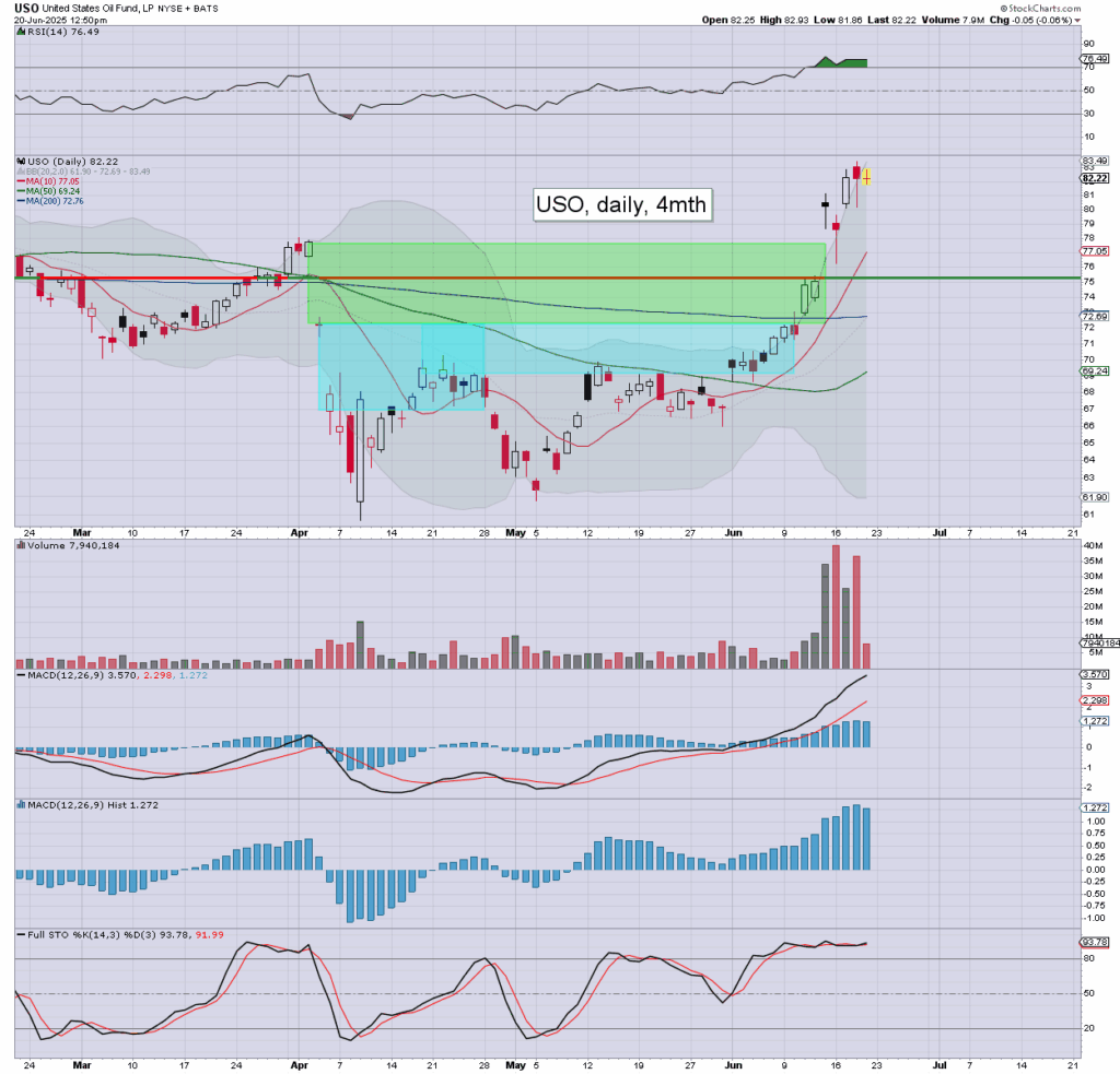 WTIC/USO: an overnight high of $75.74, and cooling to $72.32. Price action is rightly twitchy… as a hyper spike appears an eventuality.