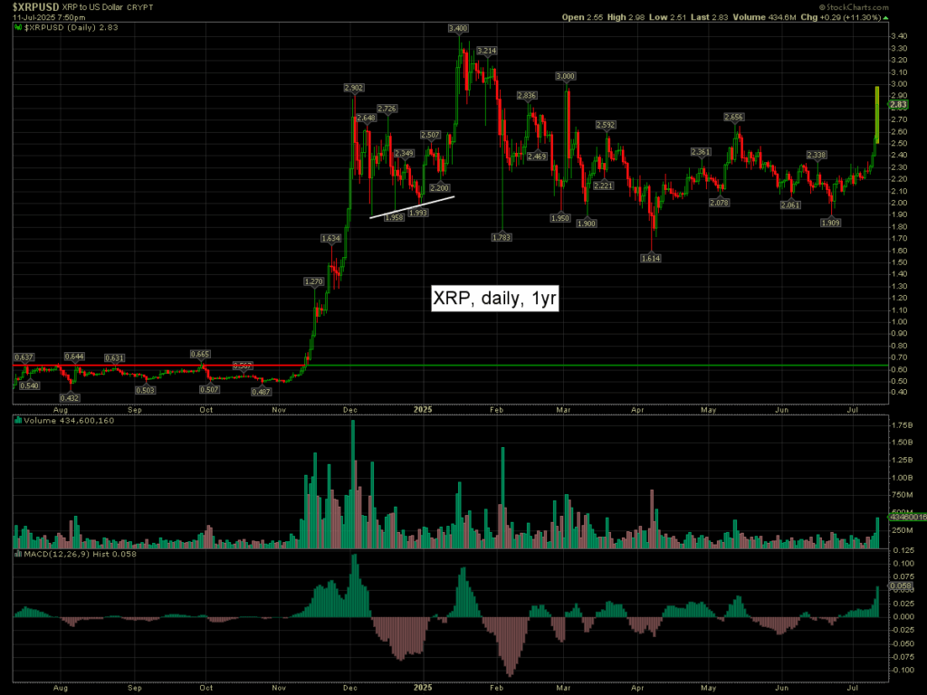 XRP spiking… +29cents to $2.83