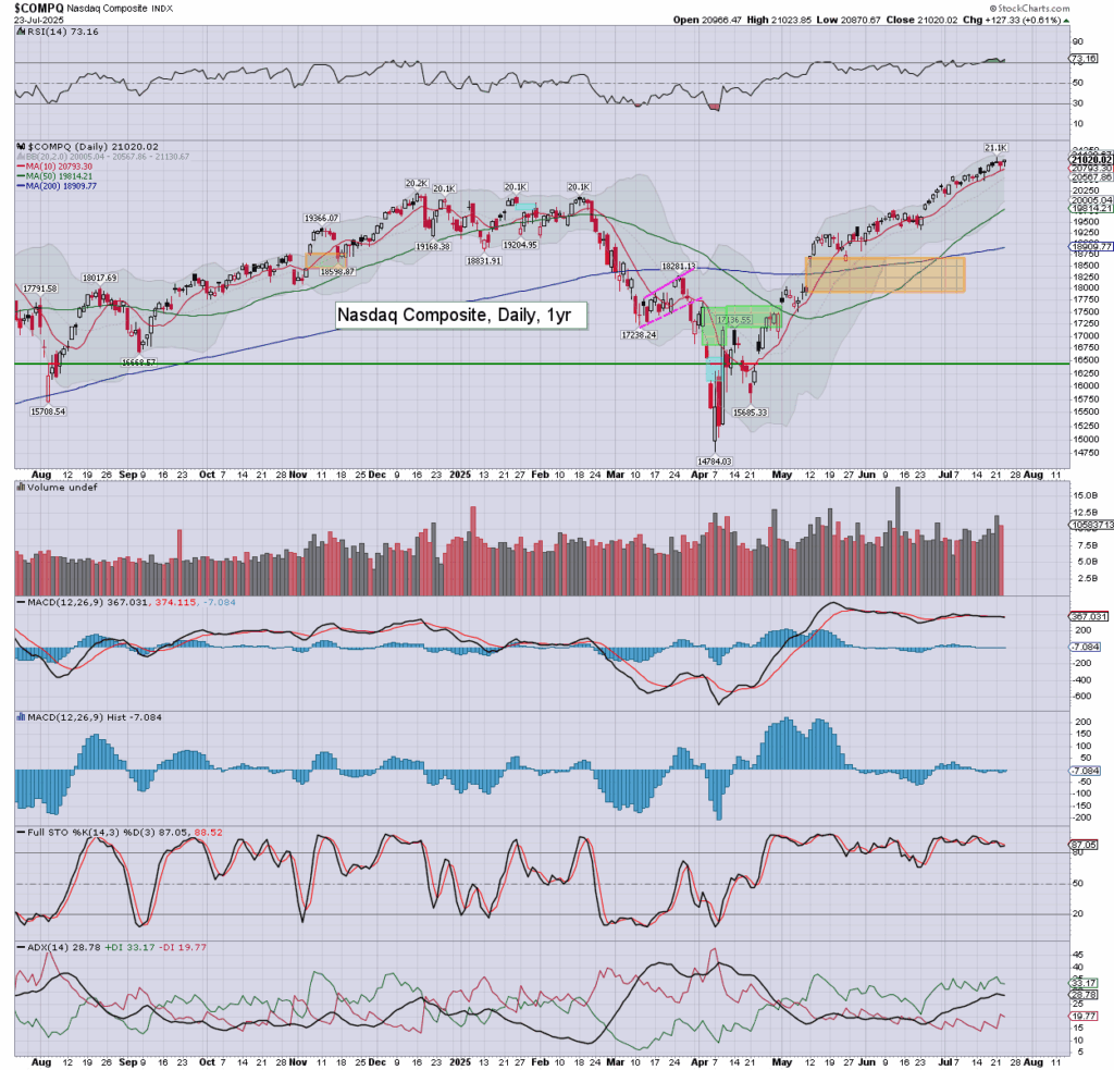 NAS: settling +0.6% to 21020. Momentum remains fractionally negative.