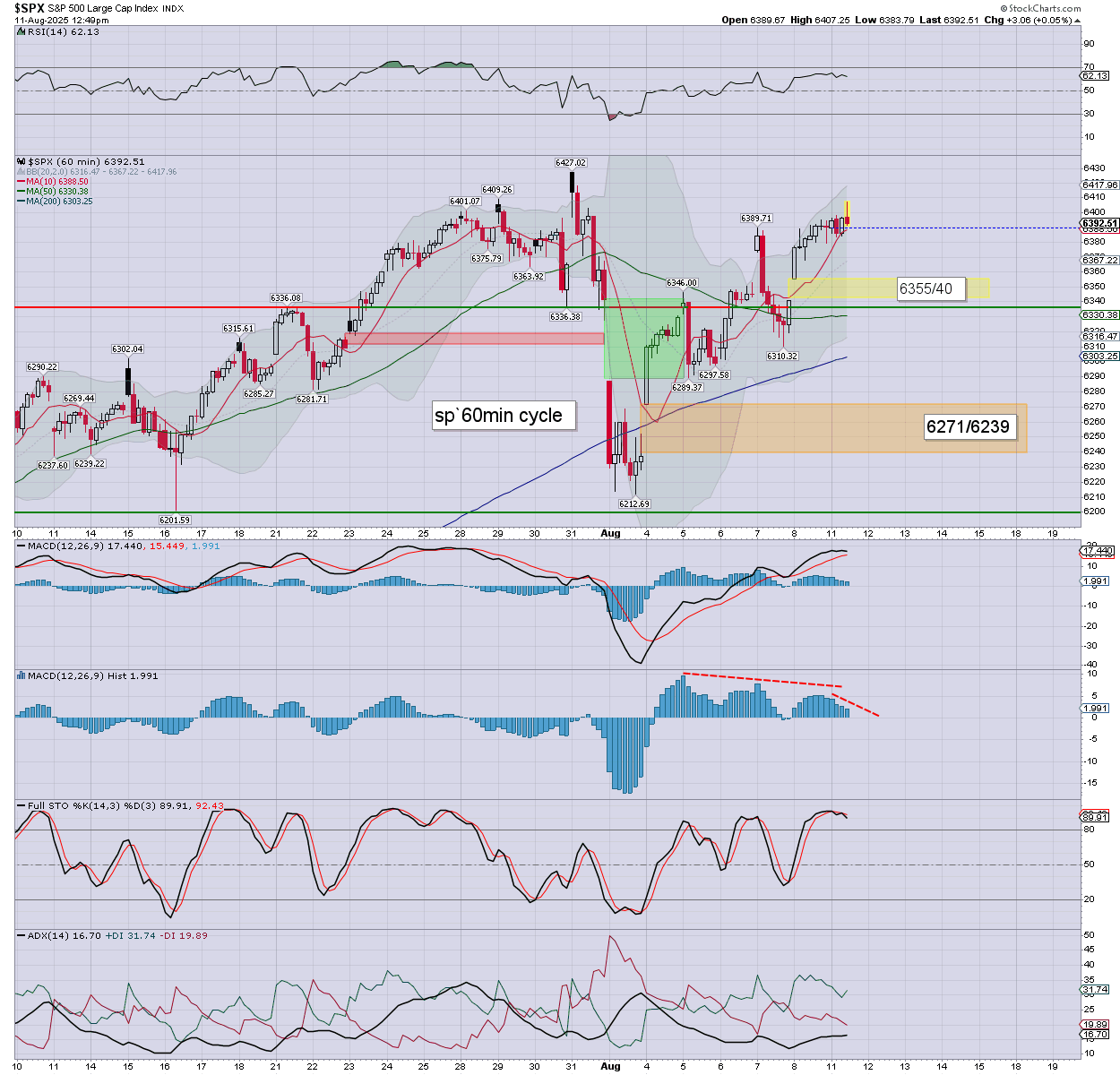 A new cycle high of 6407, if reversing lower, as s/t momentum is STILL weakening.