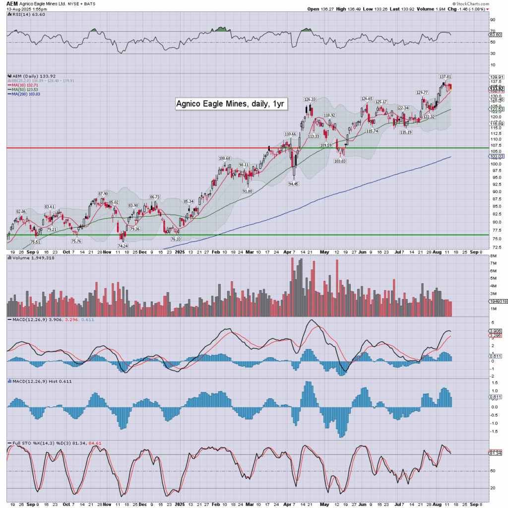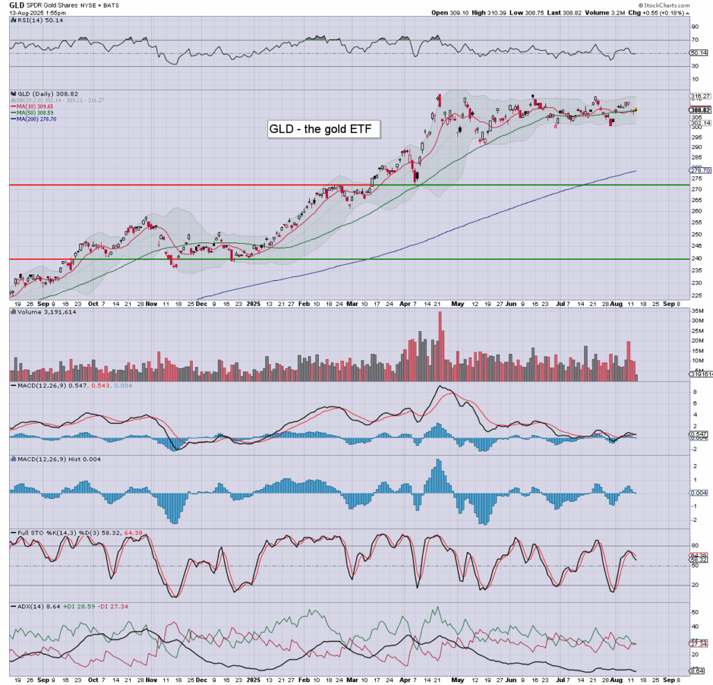 Gold/GLD: marginally higher, currently around $3354, helped by the moderately weaker dollar, and sig’ lower bond yields. Gold bugs should be open to psy’ $3K this Oct’