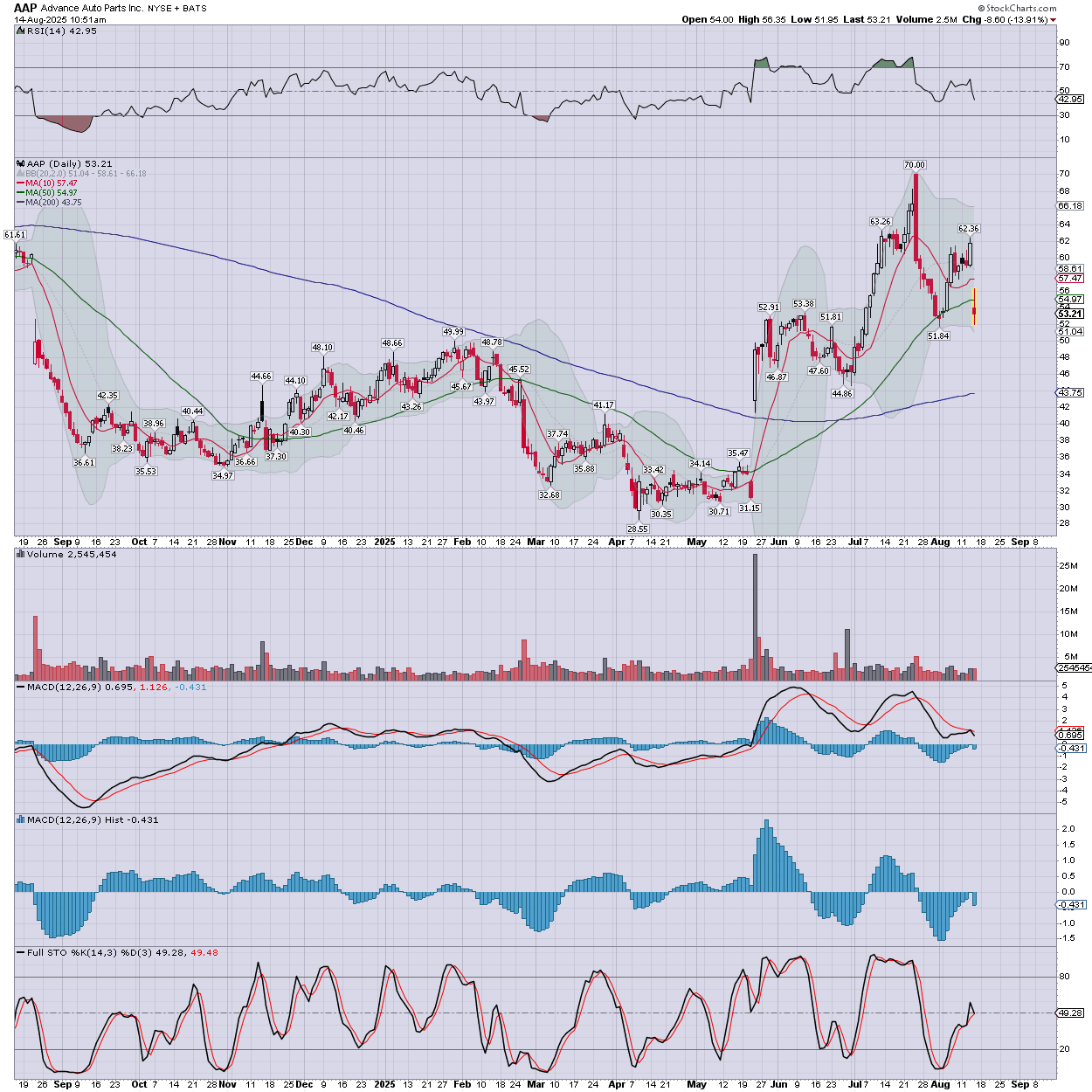 The stock remains rather stuck around the 50dma.