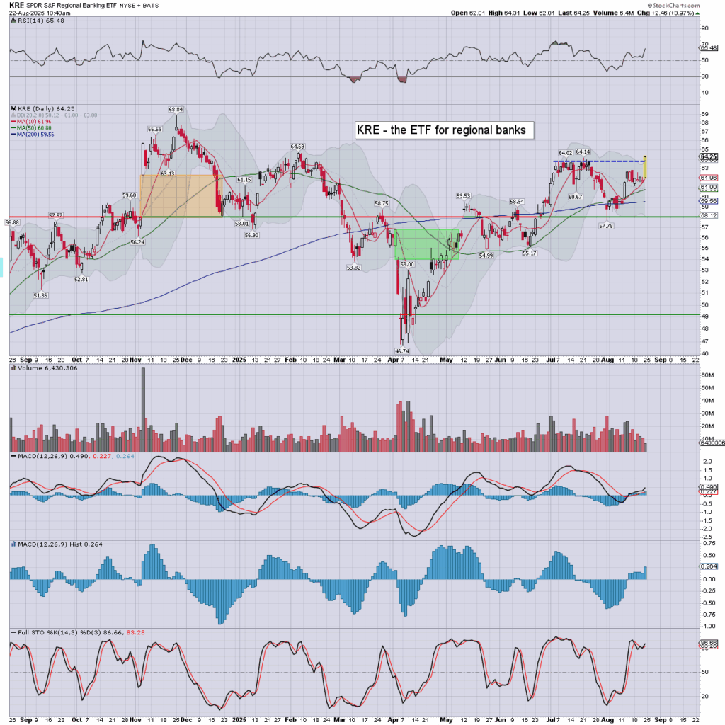 Regional banks are higher with the main market, further helped with higher bonds/lower yields.