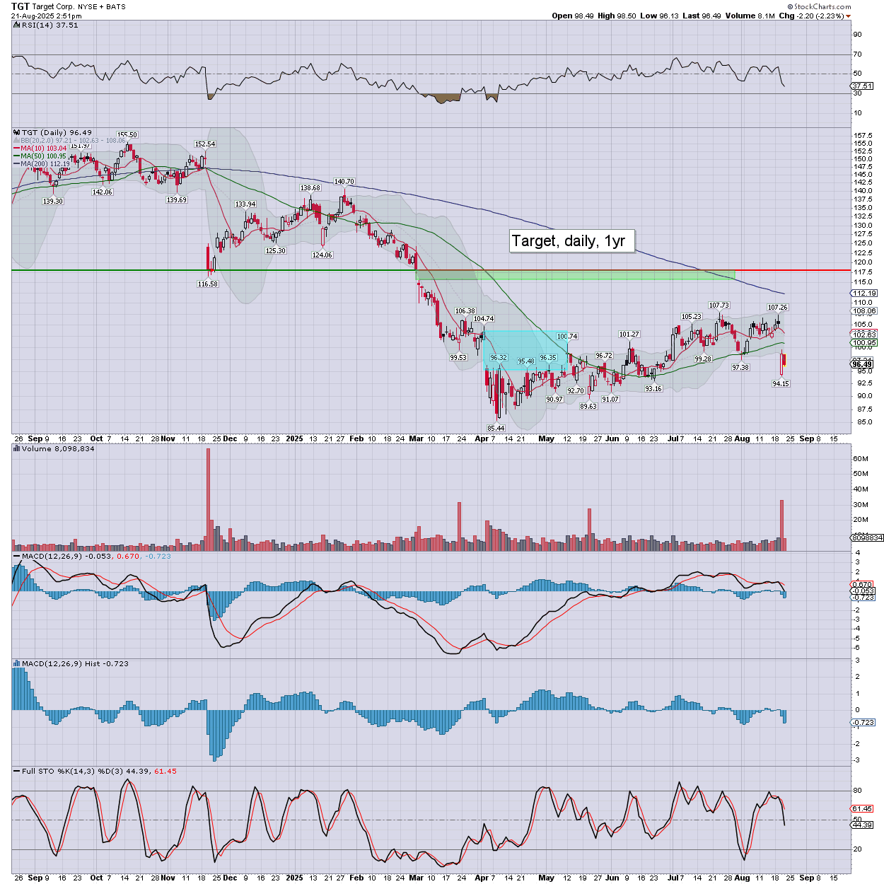 Target failed to dead cat bounce, as Wed’ reversal candle didn’t play out.