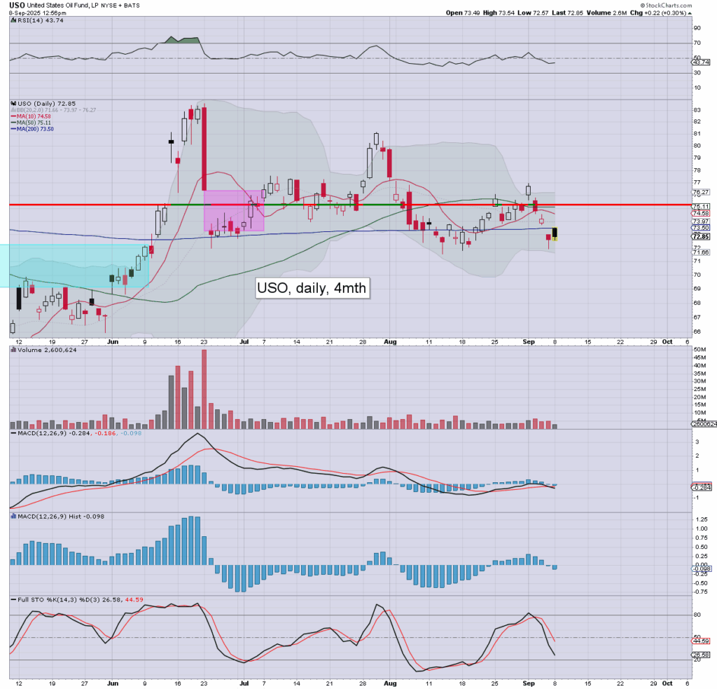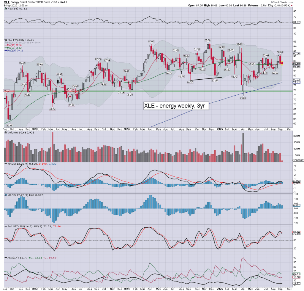 XLE: energy stocks are moderately lower. As for oil… net bearish with the main market into Oct’