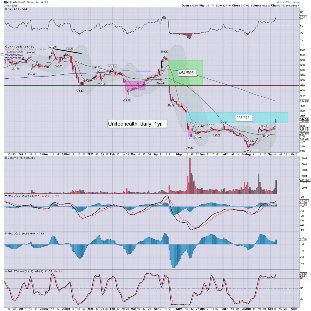 The Dow component of Unitedhealth settled +8.6% to 347.92.