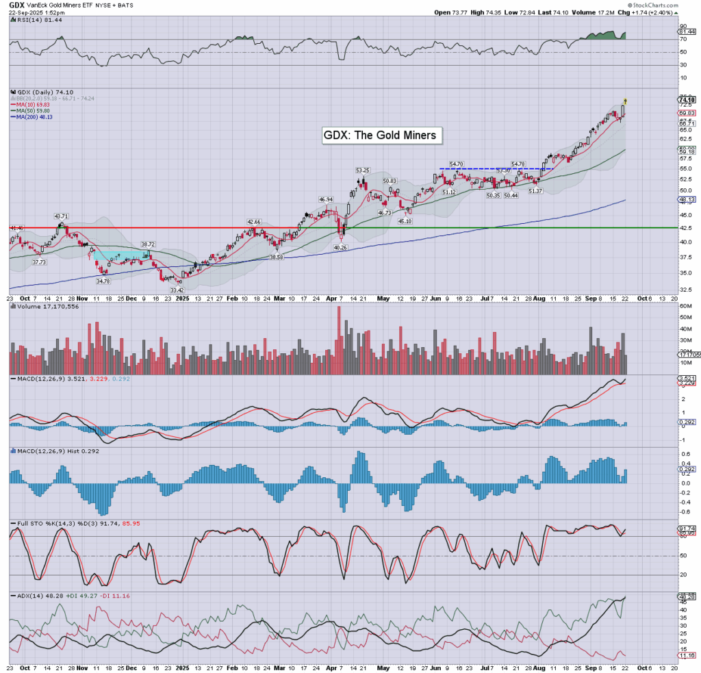 Gold/GLD: new hist’ high, $3741. Today’s marginally weaker dollar is helping.