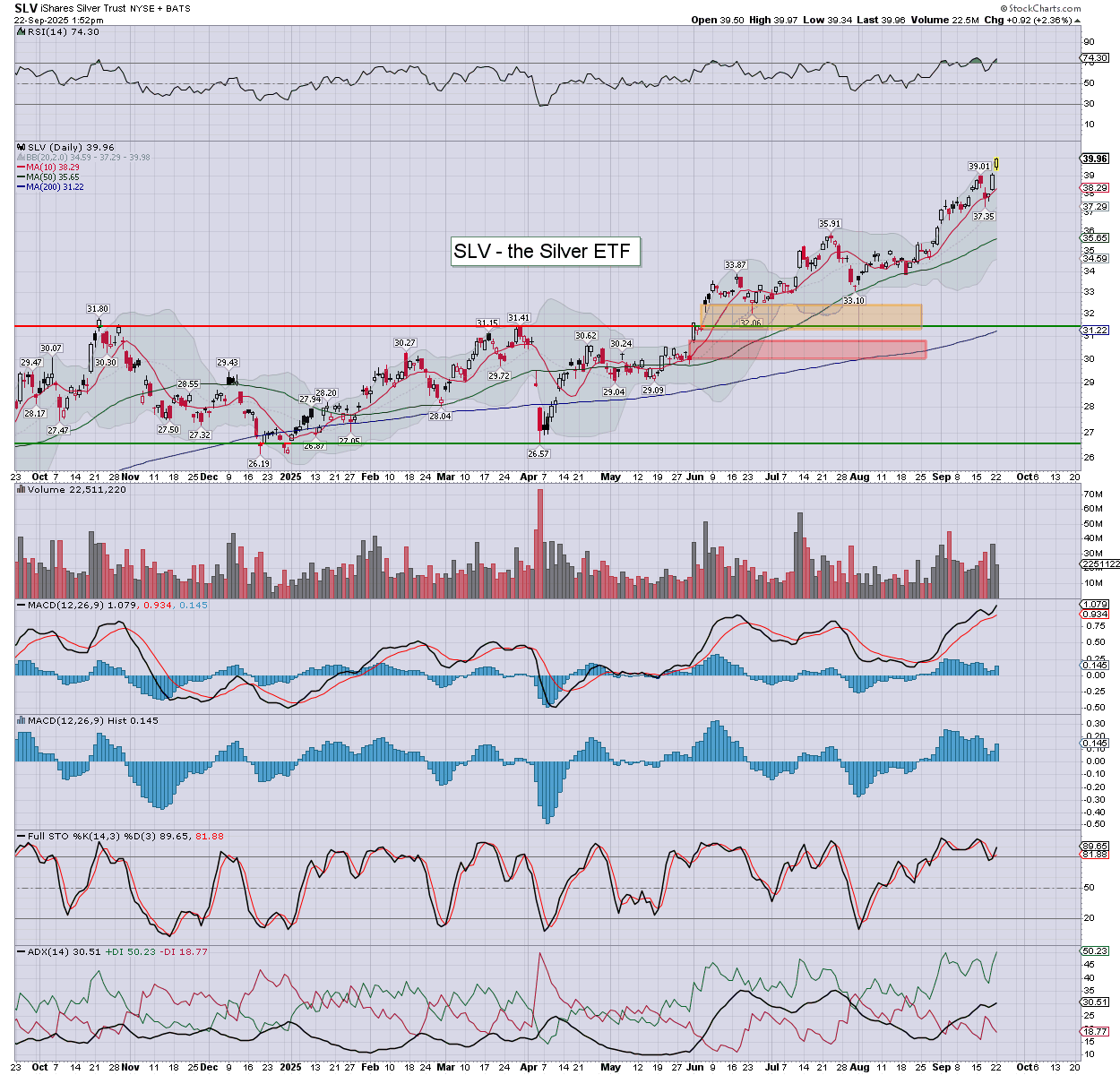 Silver/SLV: new multi-decade high, $43.96.